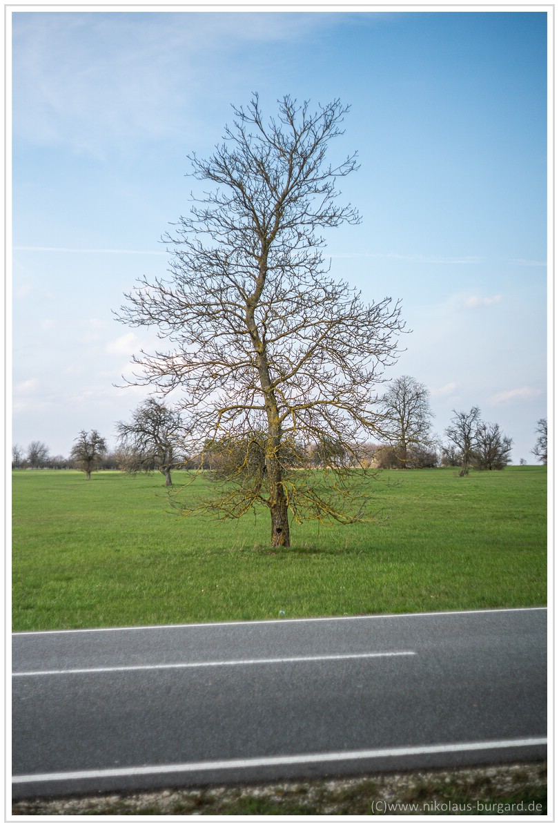 Bei Offenblende auf größere Distanzen gelingt es sehr schön, Objekte wie den Baum in der Schärfeebene zu isolieren bei angenehmem Hintergrundrendering.