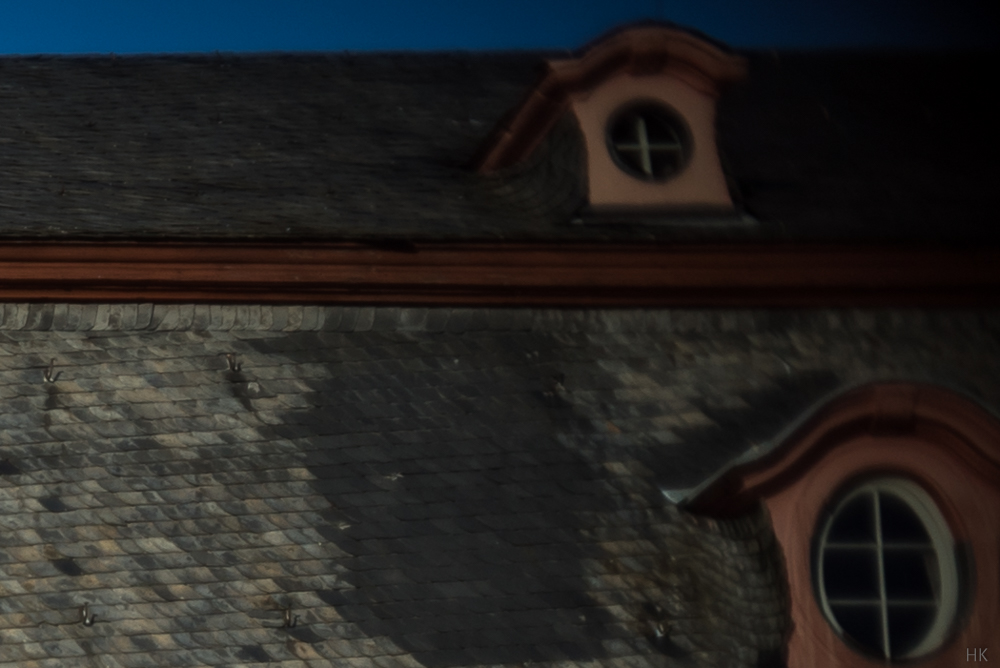 Interessant finde ich hier einen Blick auf den Hintergrund bei Offenblende: Am Rand eine viel weniger ausgeprägte Unschärfe/Weichheit als in der Mitte. Das sieht fast wie eine stark gekrümmte Schärfeebene aus, ist aber wohl eher ein Effekt des "schmaler" werdenden Bokeh in Richtung Rand.