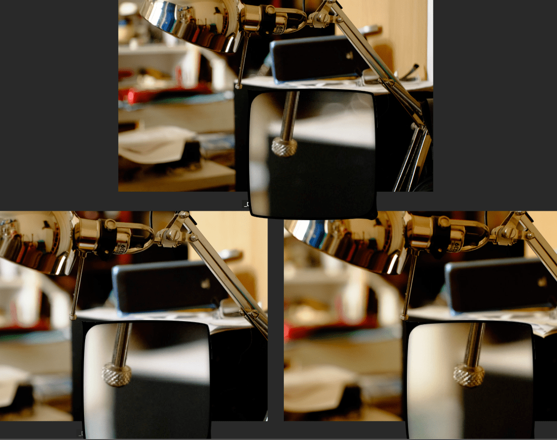 Hier mal ein unwissenschaftlicher Vergleich zwischen 3 Objektiven mit der gleichen Einstellungen an der Kamera der Blende und der Verschlusszeit. Der Fokus liegt auf dem gerändelten Knauf des Hebels an der Schreibtischlampe. Finde das Ultralit schlägt sich gut. Auffallend die erkennbar wärmere Farbwiedergabe des Beroflex.