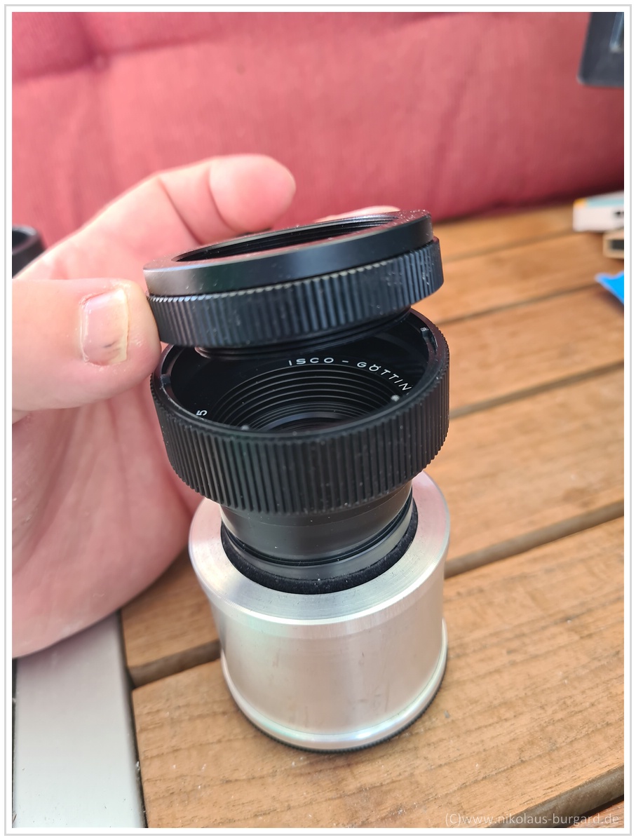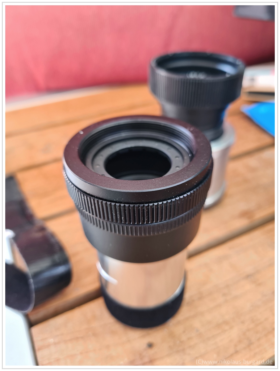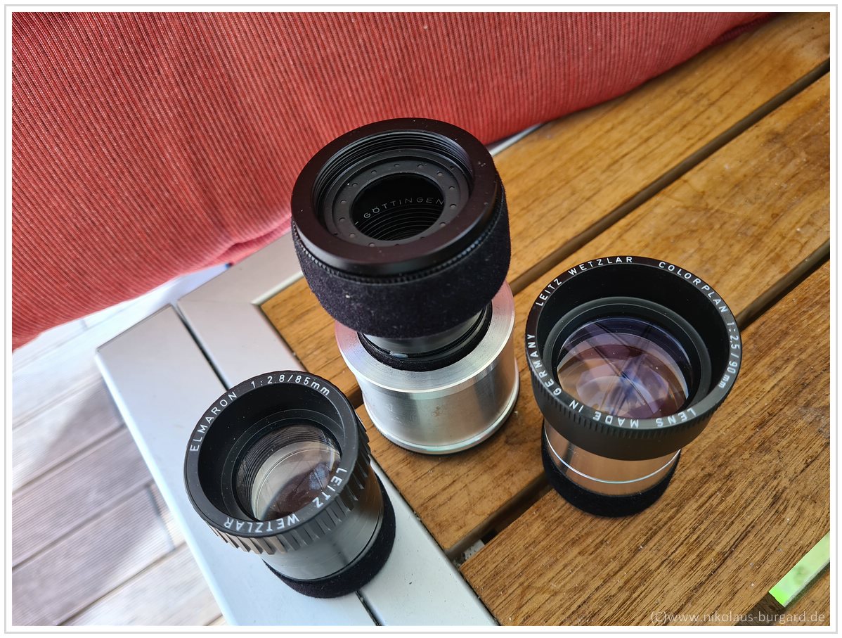 ...oder anderen Projektionsobjektiven mit ähnlicher Größe, wie dem Leitz Elmaron.