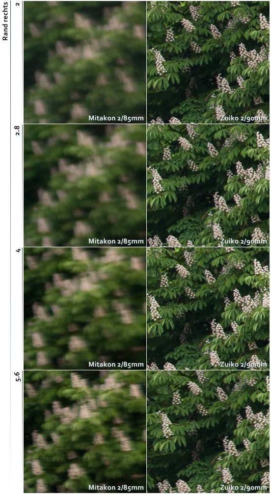 Jetzt wird's ganz schlimm - der äußere rechte Bildrand am KB-Format. Das Mitakon bekommt leider keinen Fuß auf den Boden, andererseits macht sich hier die exzellente Bildqualität des Zuiko schon bei Offenblende bemerkbar. Wie gesagt, kein ganz fairer Vergleich.