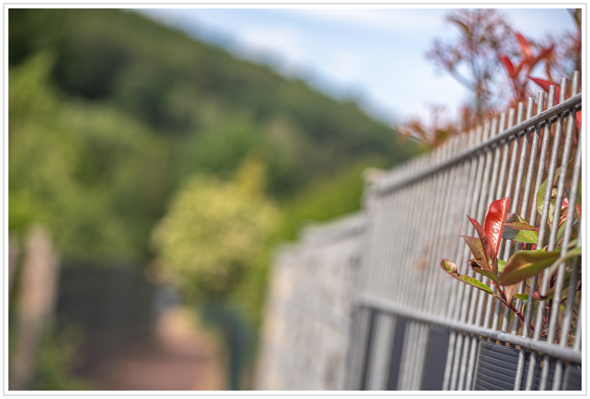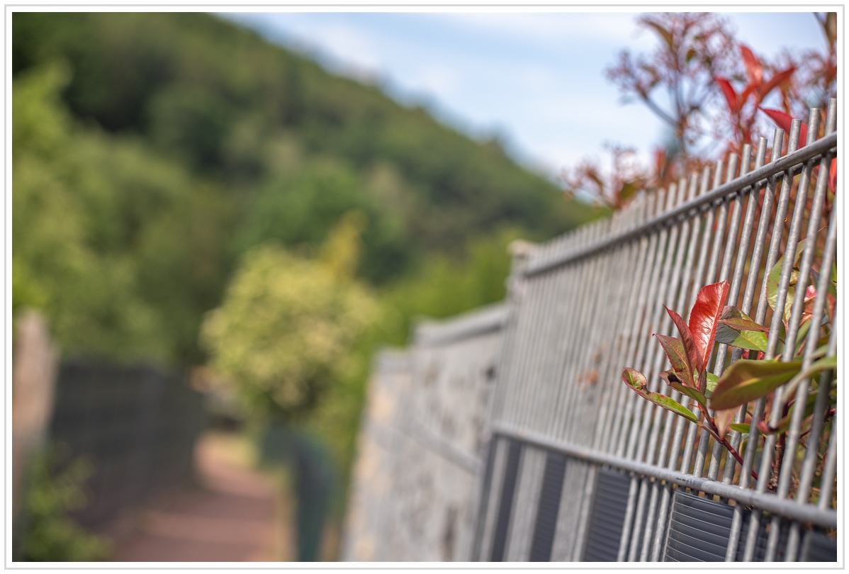 Das brachte erhebliche Schärfezuwachs und logischerweise mehr Schärfe an den Rändern. Die Schärfentiefe habe ich nicht explizit beachtet... Jetzt habe ich eine Lochblende mit Öffnung irgendwo zwischen 4 und 5 vor die Vorderlinse gesetzt und einige Motive mit Schrägstruktur bzw. mehreren Ebenen fotografiert. Sieh da, nicht schlecht!