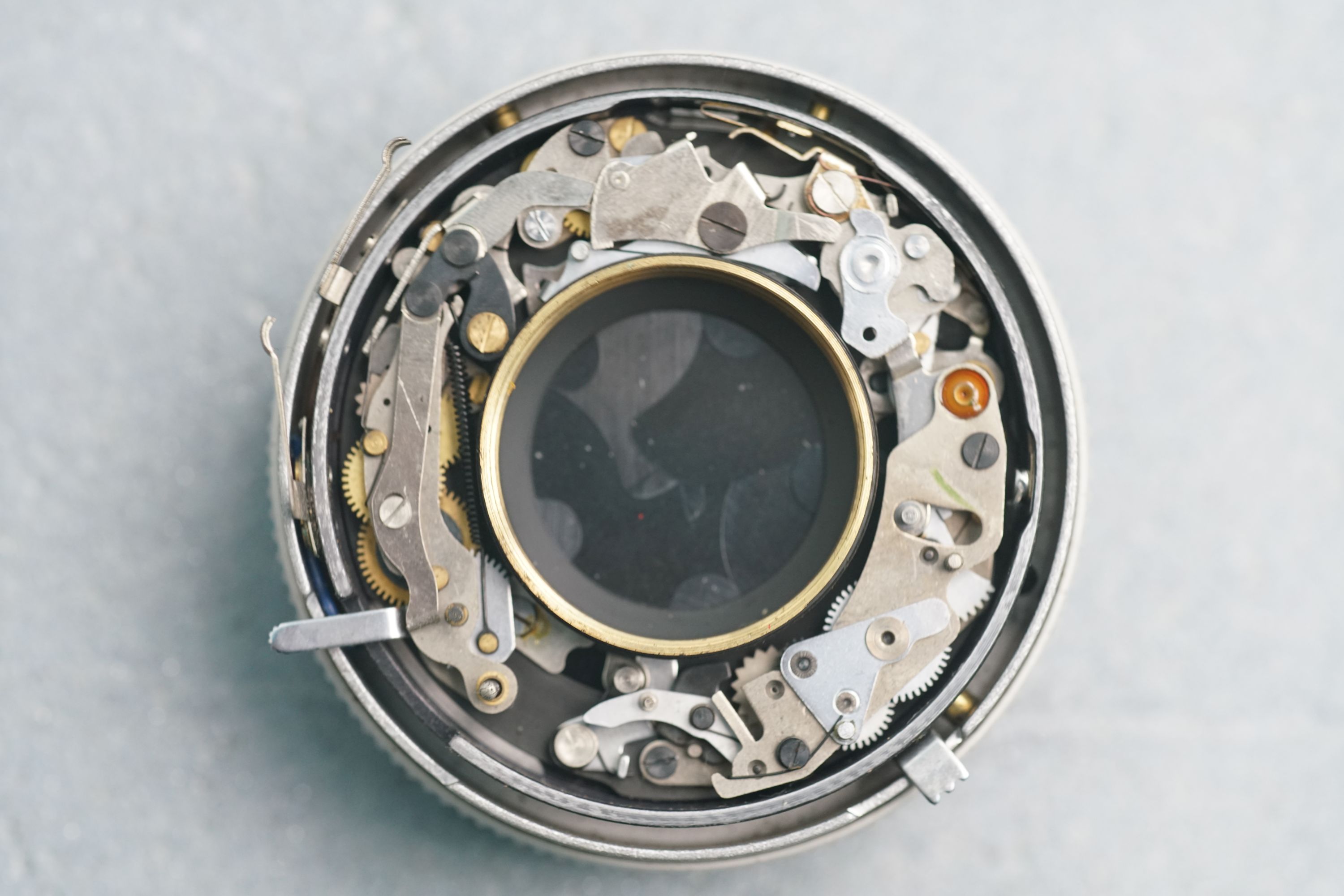 Die Steuerung des Verschlusses erfordert viele Zahnräder, Federn, Hebel... (schaut fast wie in einer