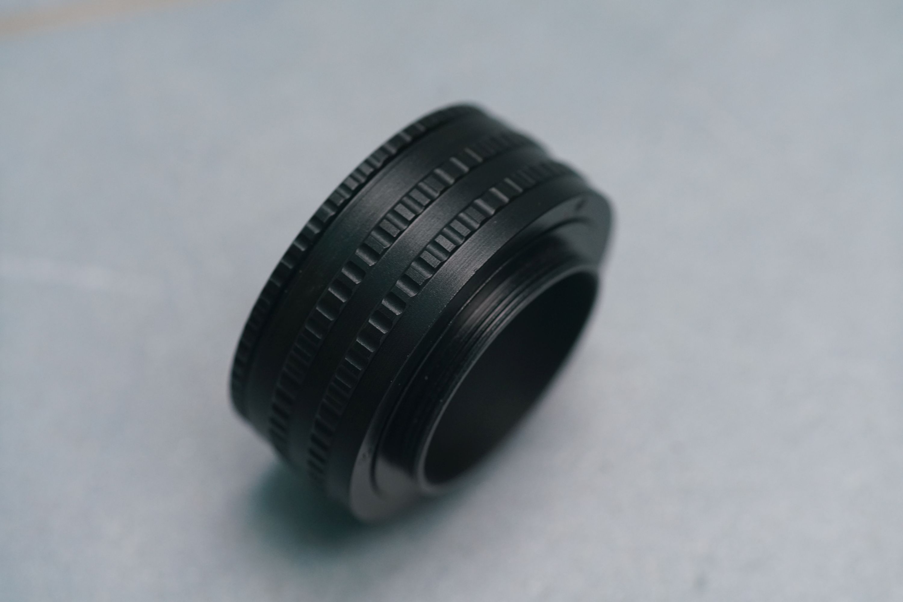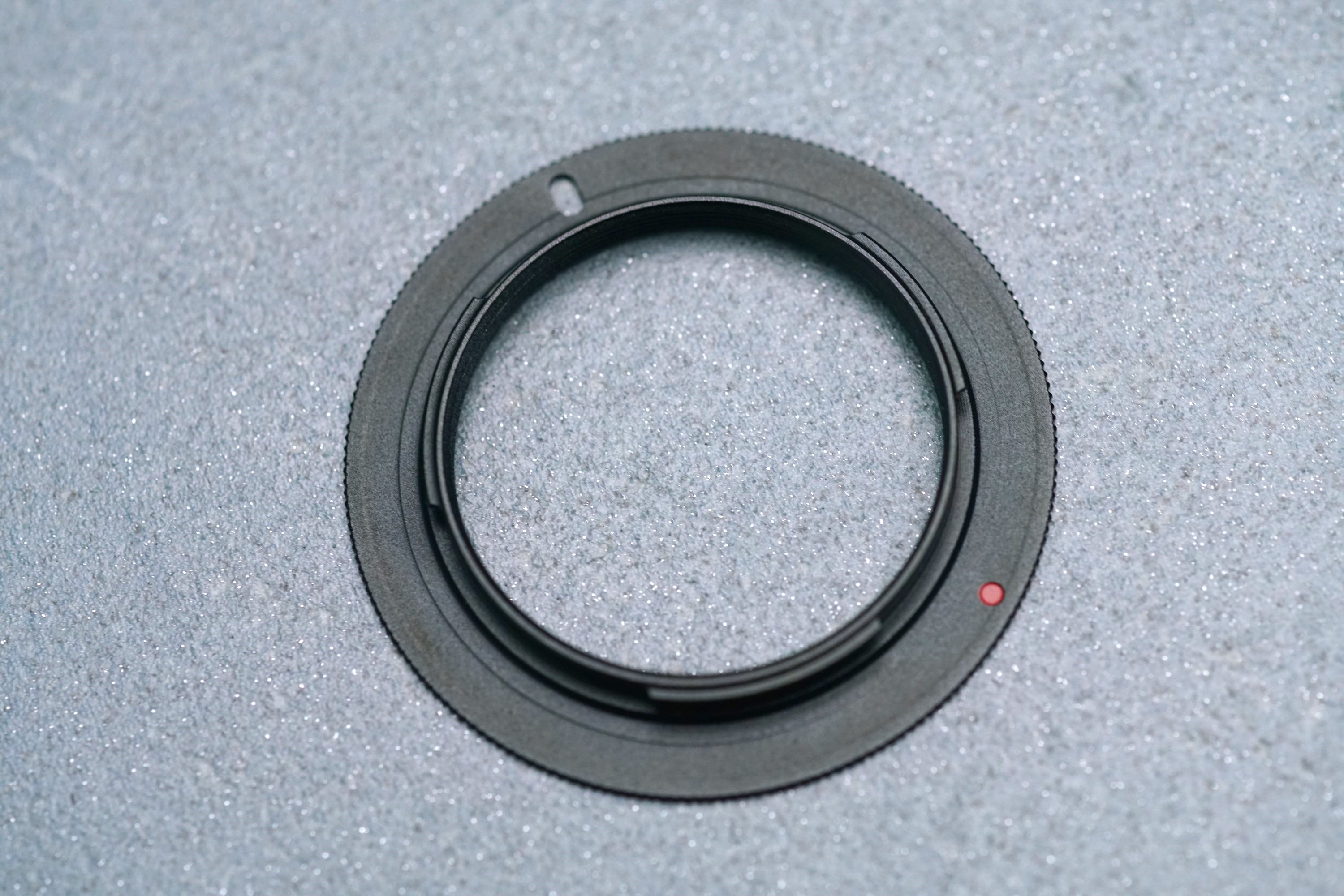 Dieser Ring läßt sich perfekt passend in das objektivseitige Gewinde eindrehen. Das M42 Außen-