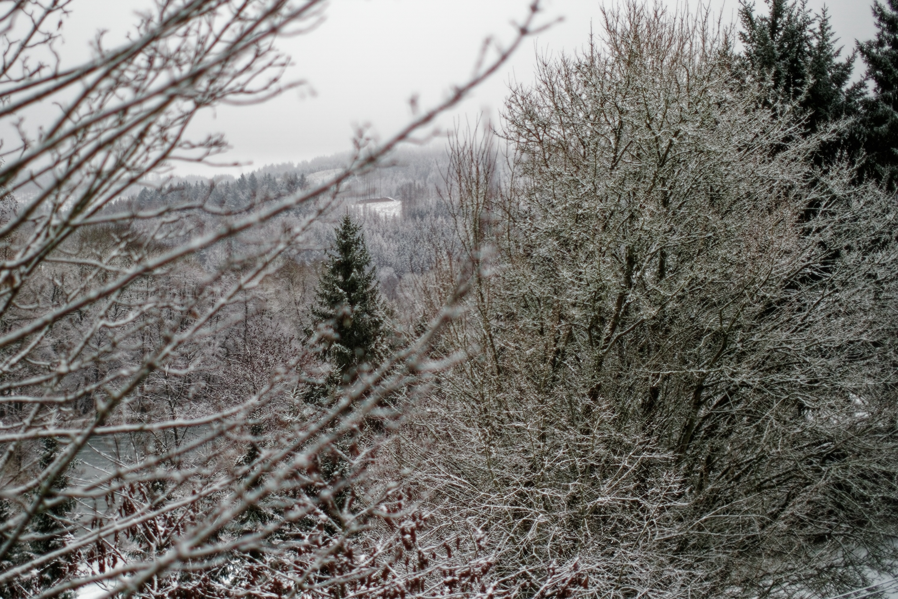 Alles Aufnahmen mit dem 7Artisans 35mm f/0.95 bei Offenblende, artgerecht an der A6500, von heute Morgen bei grauem Schneehimmel: