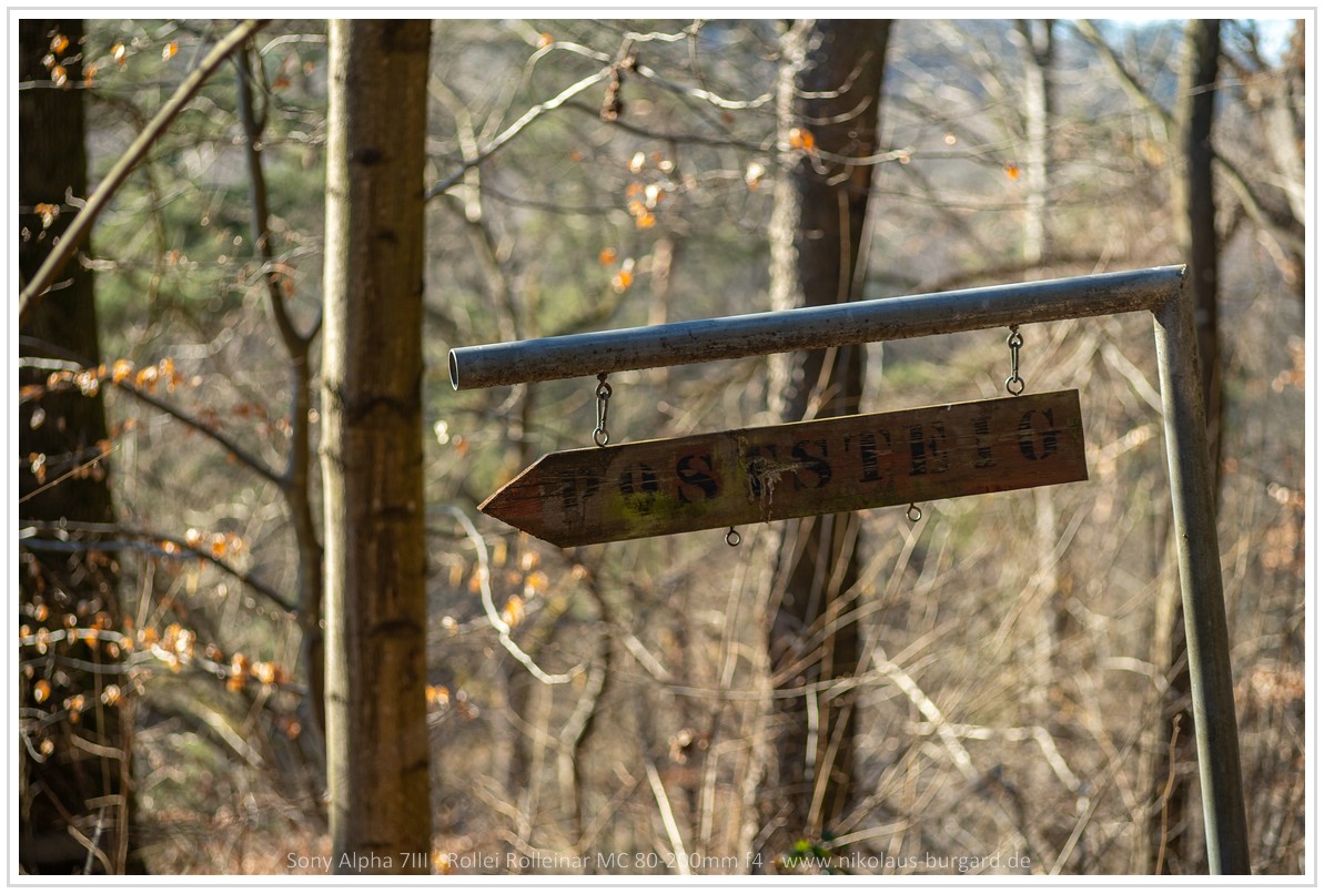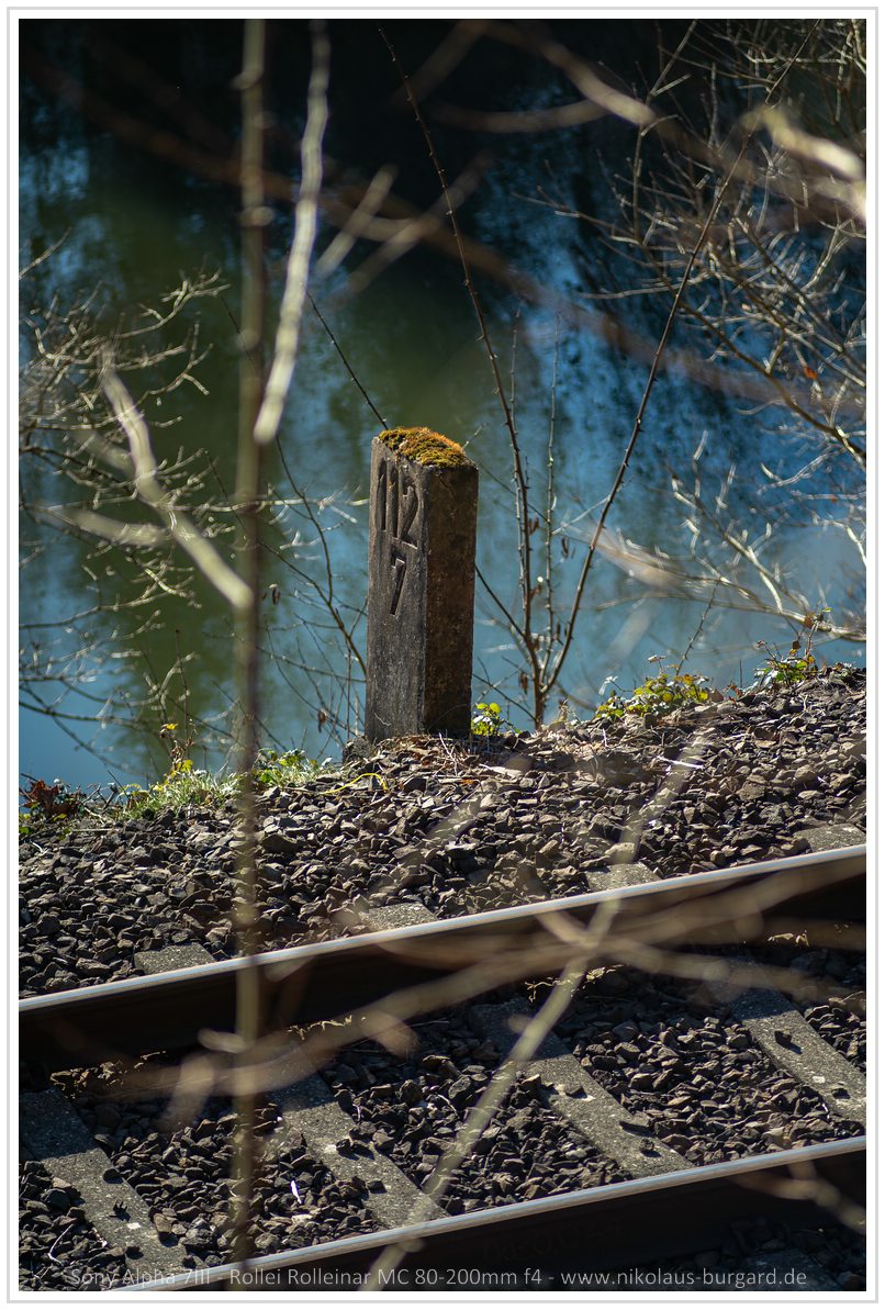 5px rechts neben dem roten Strich sieht man die senkrechte Linie, die der Stahl zu werfen scheint. Zugegeben, bei diesem Bild fällt es nicht ins Gewicht, aber beim scharfen Zaunpfosten in Deinem ersten Zaun habe ich es mit bloßem Auge gesehen. Wenn ich dann schon am zählen bin: Der Streifen oben ist mehr als 15Px breit. Das ist bei 24MPx schon ganz schön viel. Der Kleinbild Zerstreuungskreisdurchmesser für 24Mpx sollte so 5Px sein.
