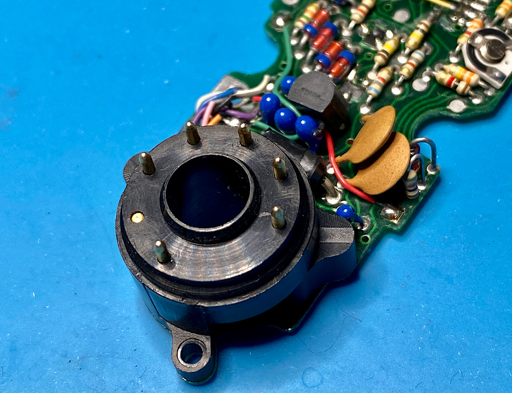 Die elektronische Signalübertragung Motor Drive - Kamera erfolgt über federnde Stiftkontakte in einem Ring.