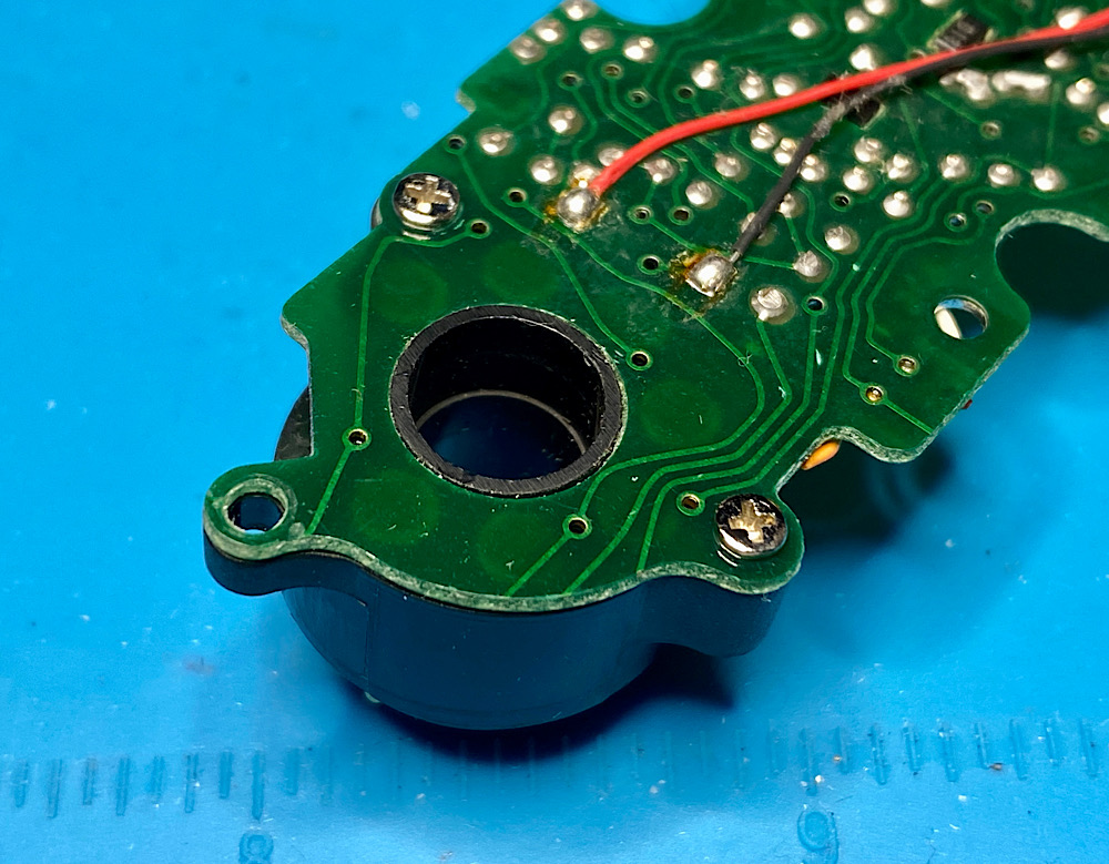 Der Ring kann von der Platine nach Lösen von zwei Schrauben abgenommen werden:
