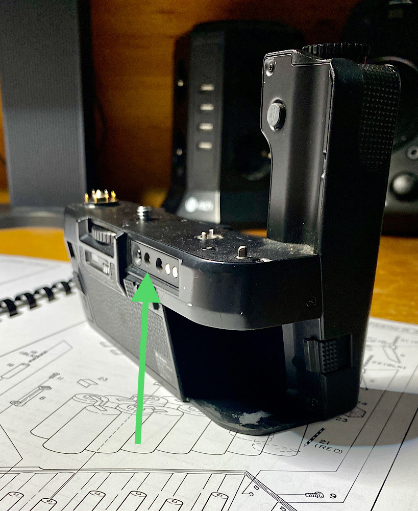 Die Stiftkontakte im Ring und die Gegenkontakte an der Unterseite der F3 koppeln beim Aufsetzen der Kamera auf den Motor Drive: