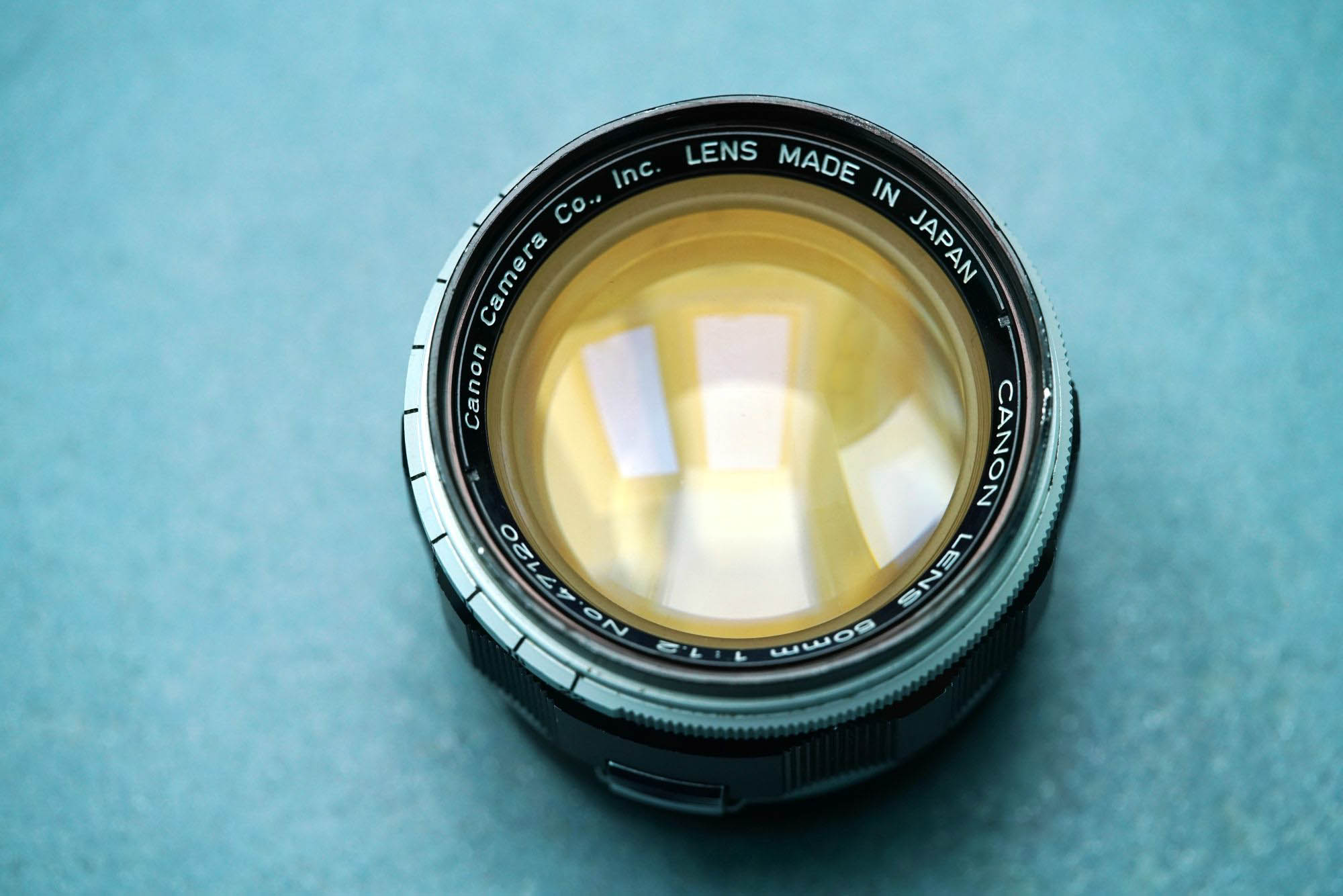 die Frontlinse des Canon ltm 1,2/50mm und die verkittete Linsengruppe, welche hinter der Blende liegt, desselben Ob-