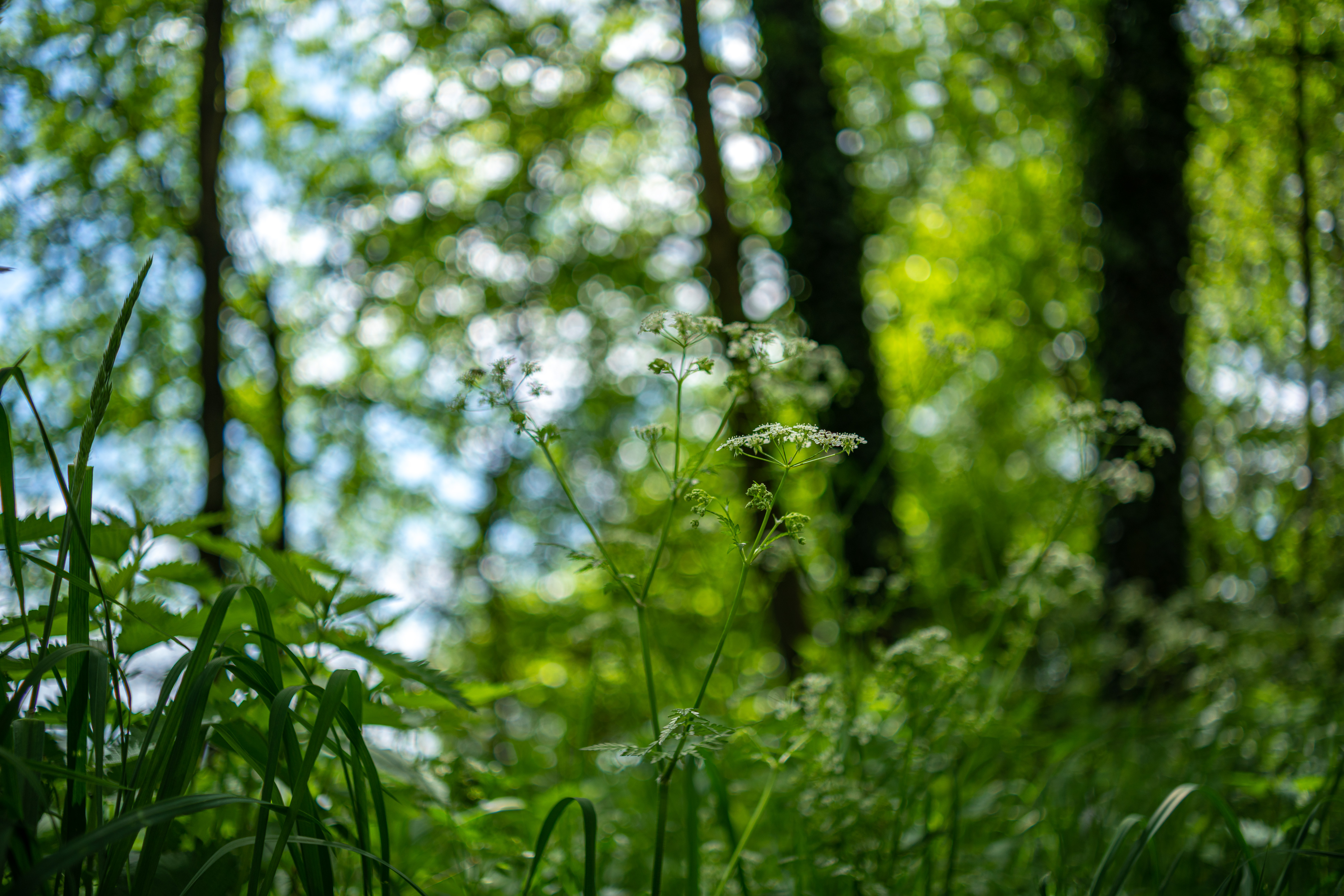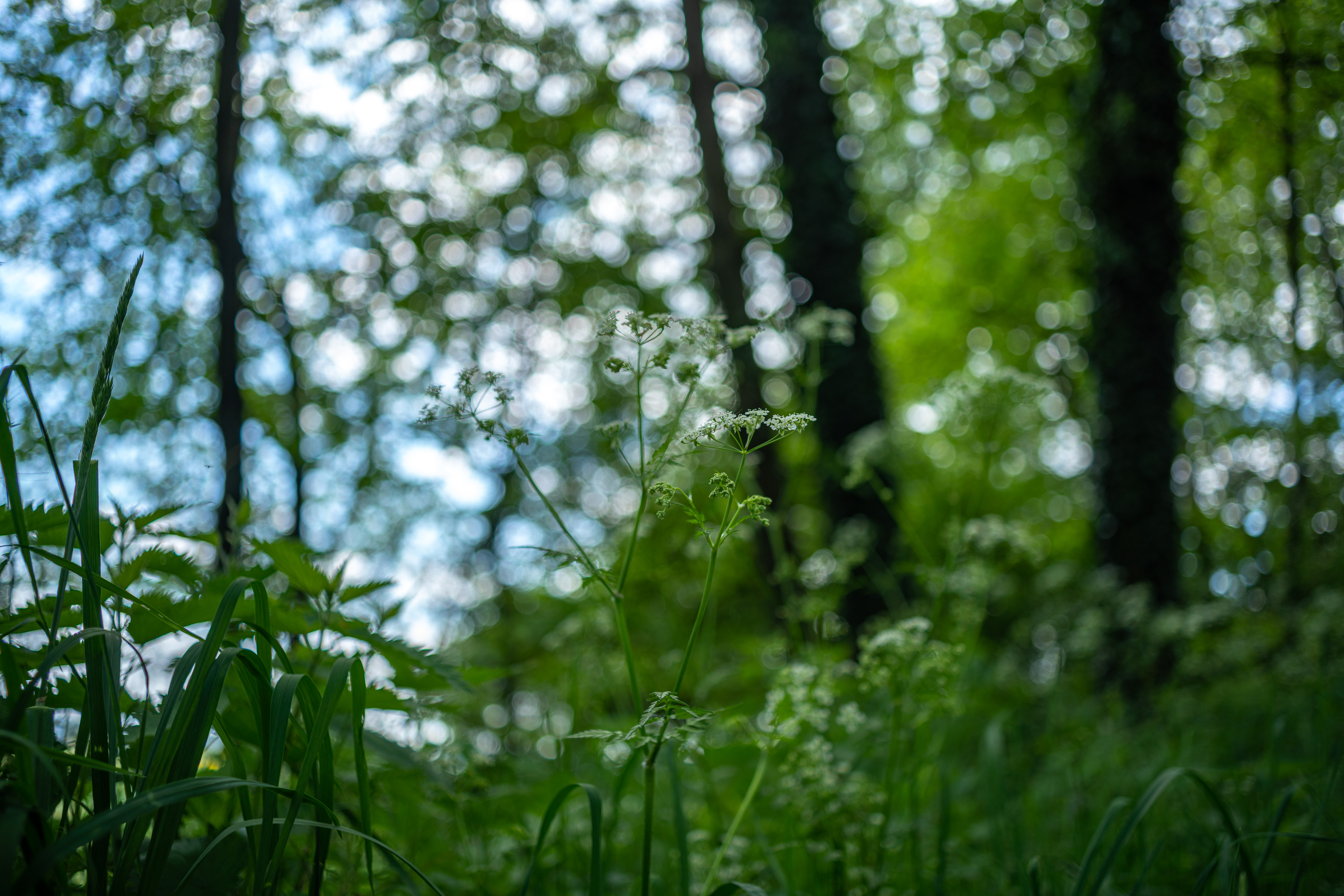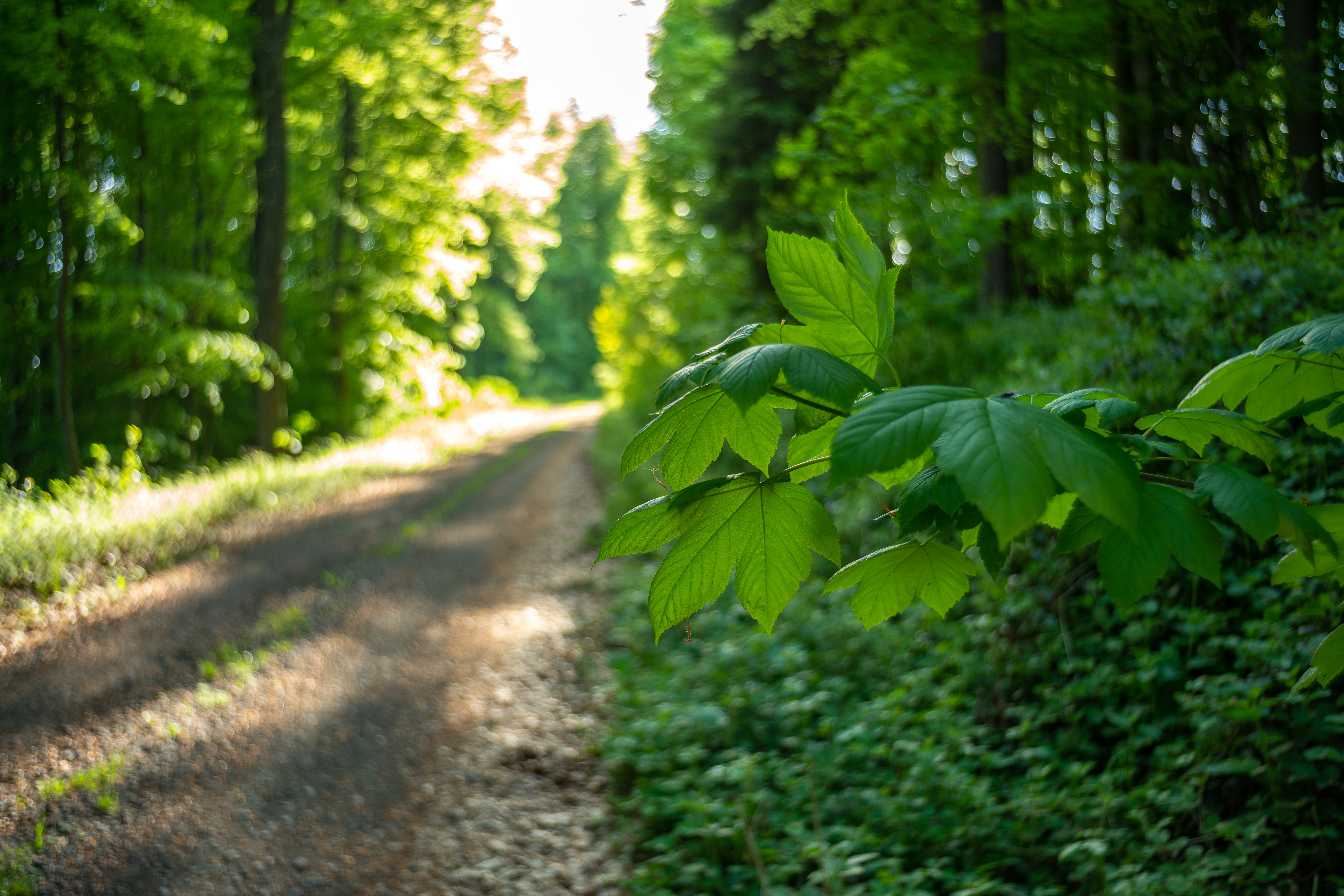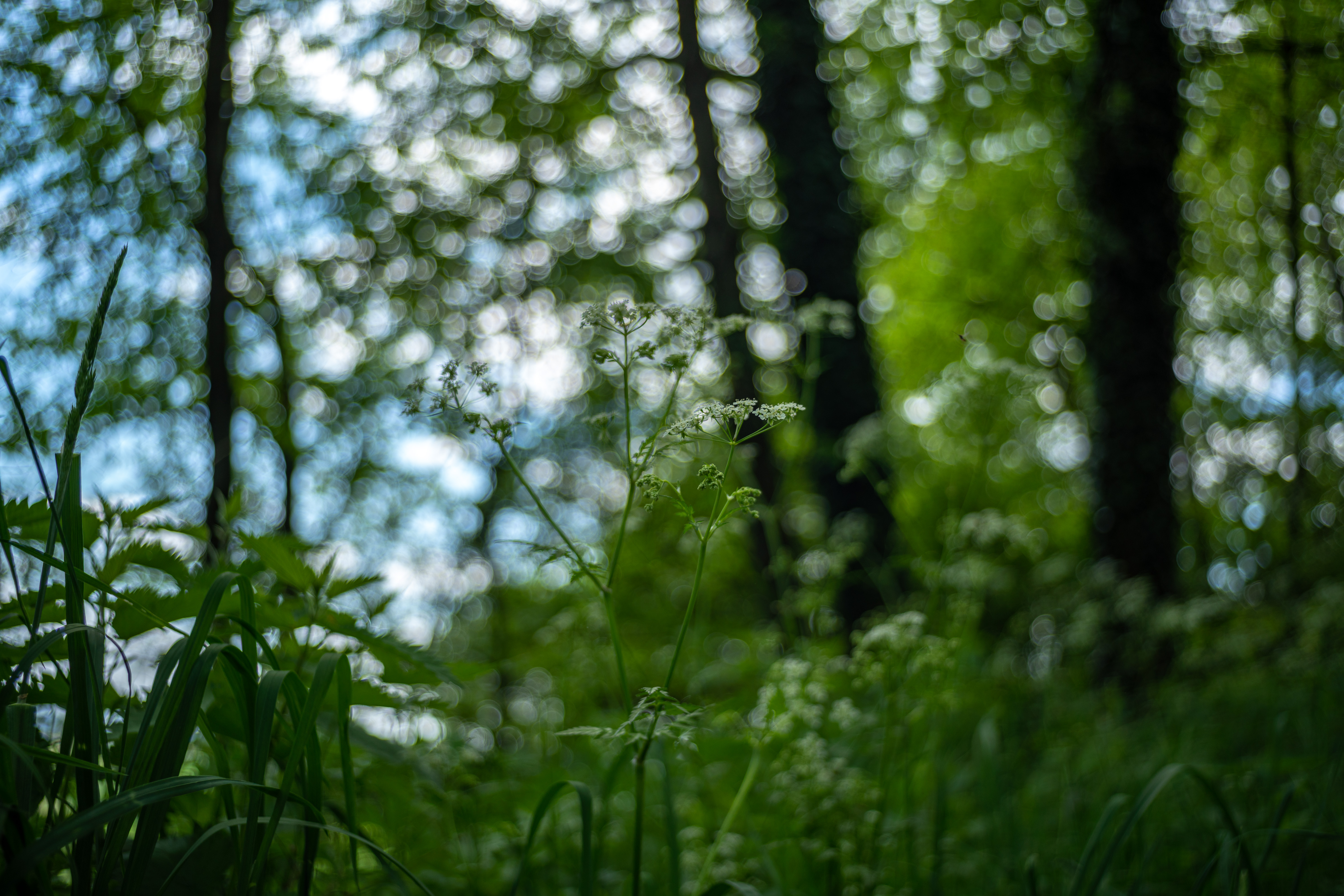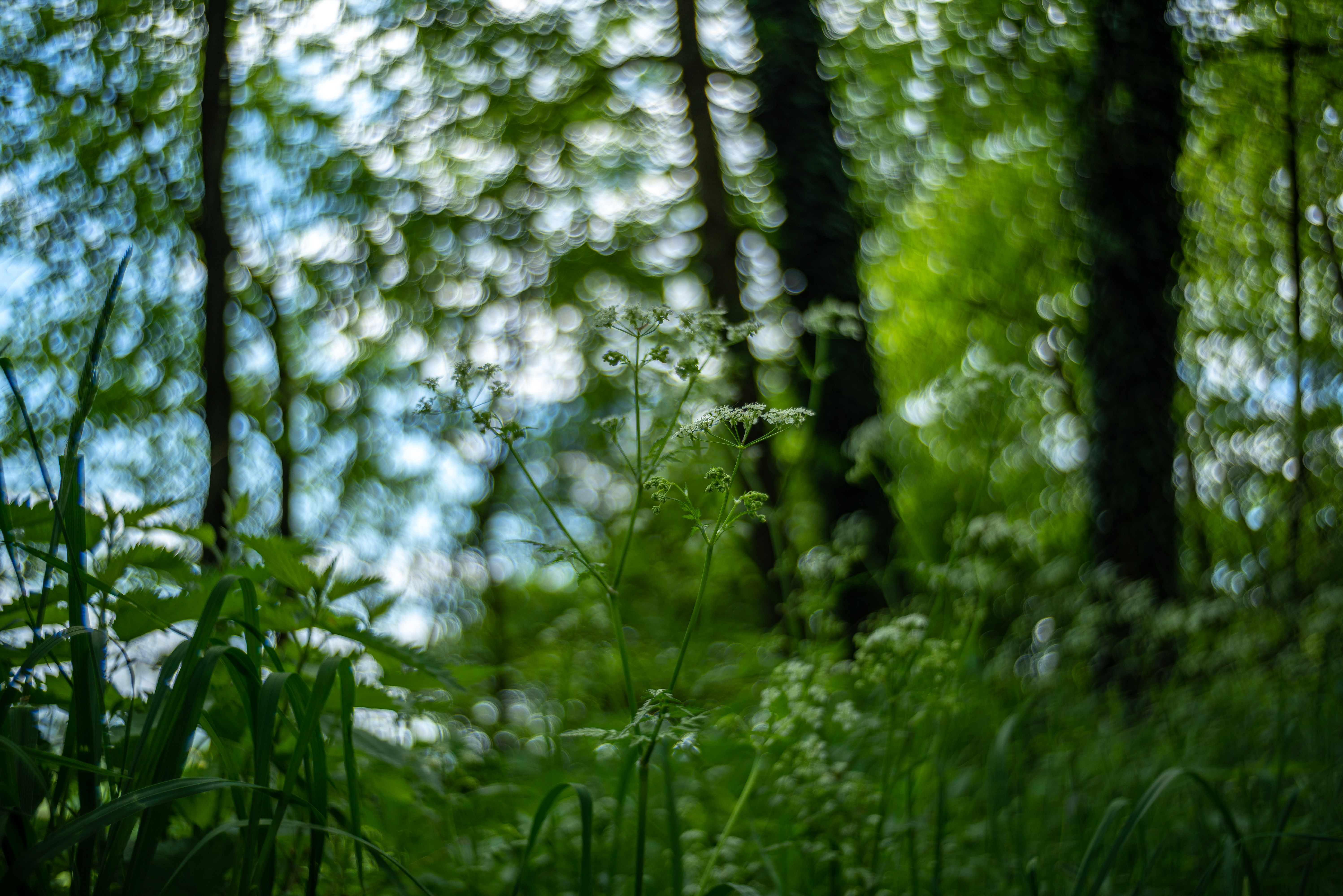Kurze Distanz im Wald gegen Blätter mit durchscheinendem Licht bei f2.8: