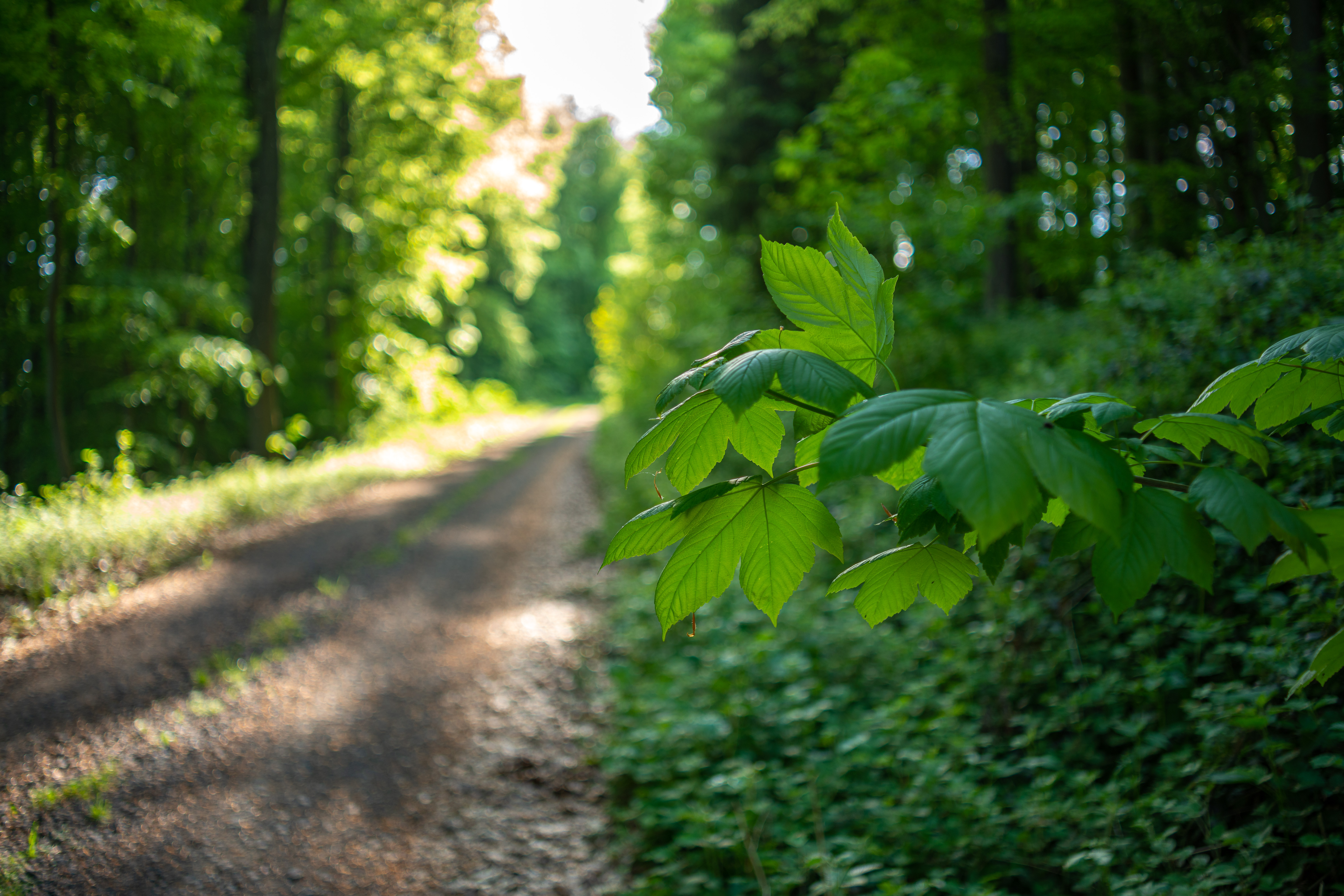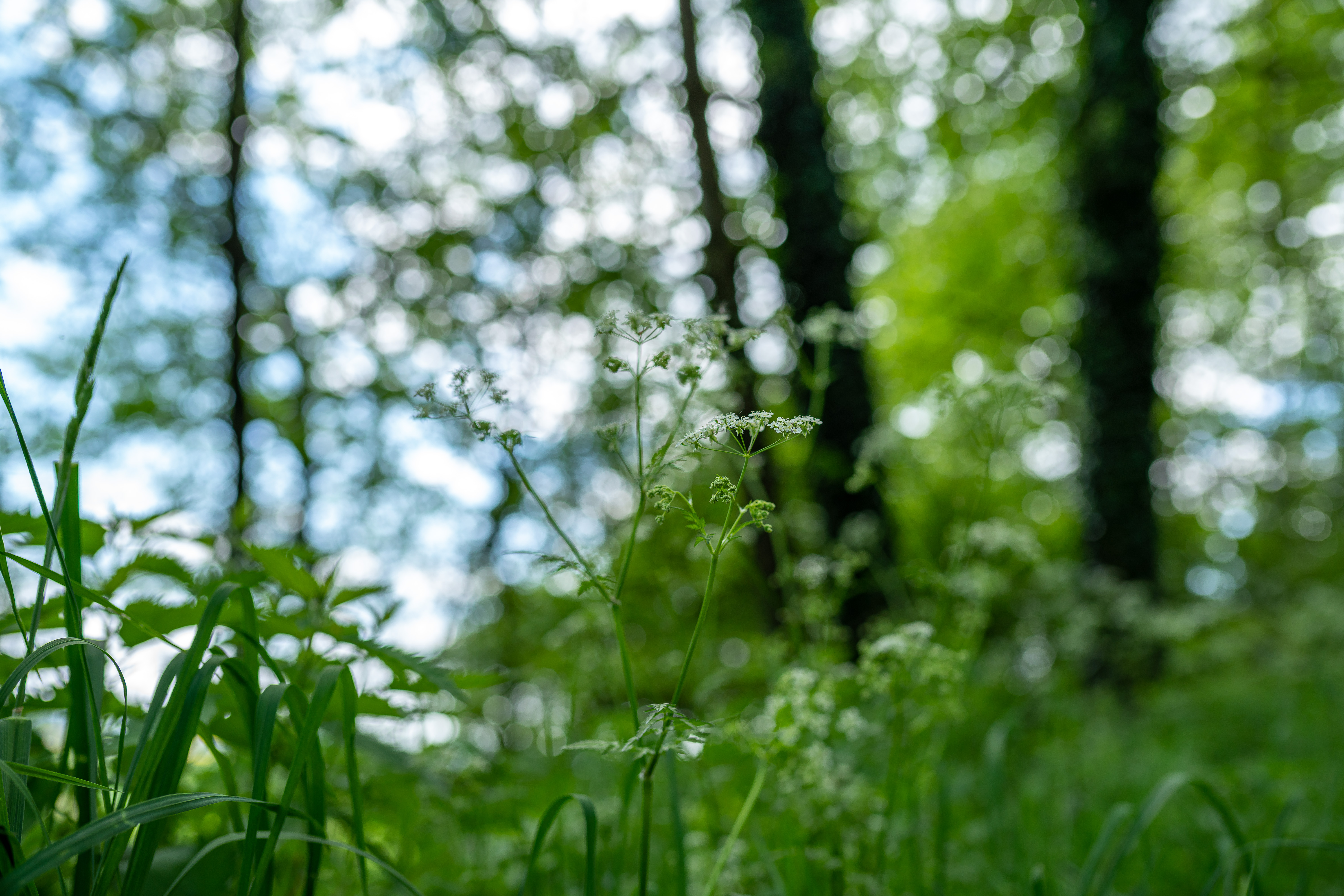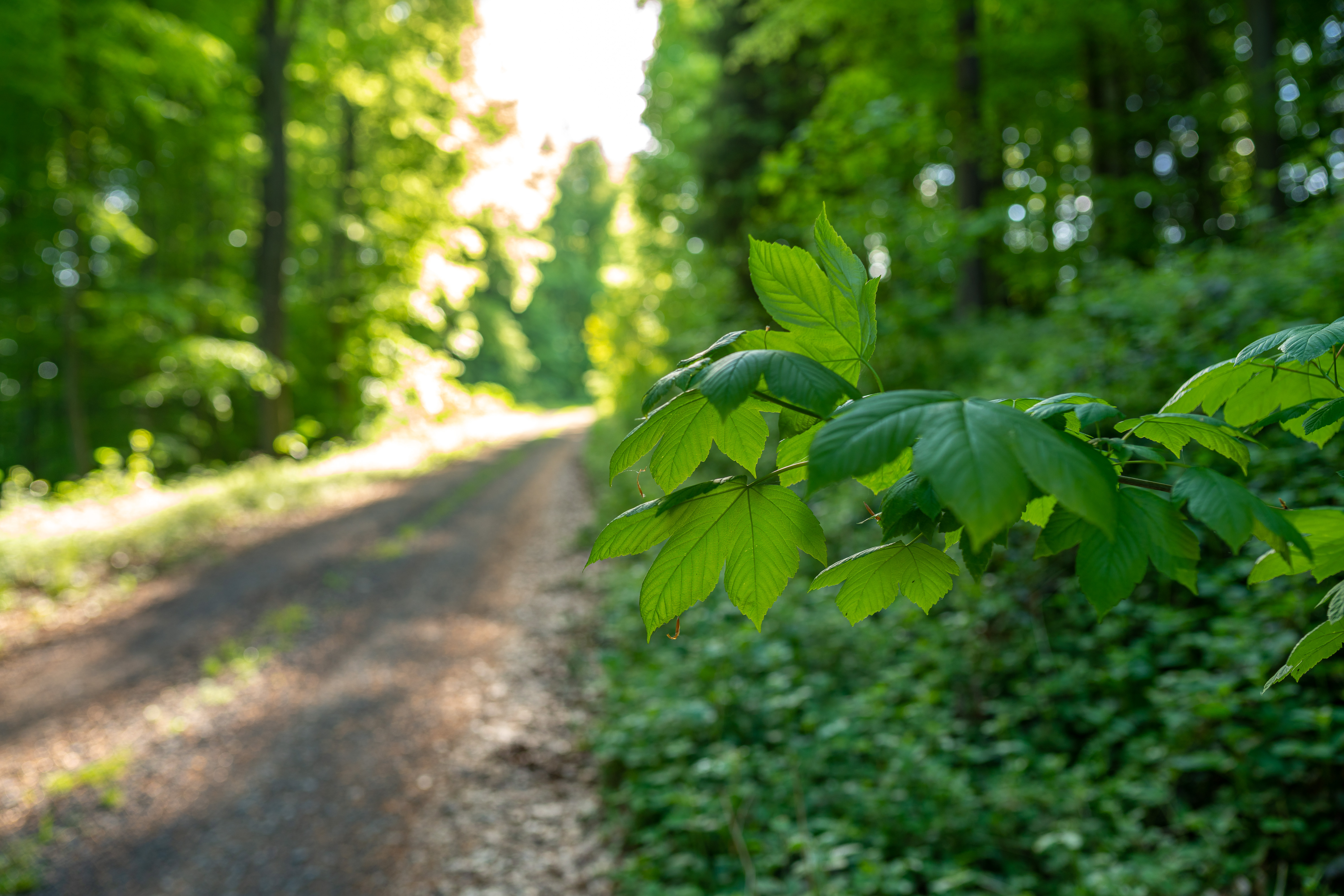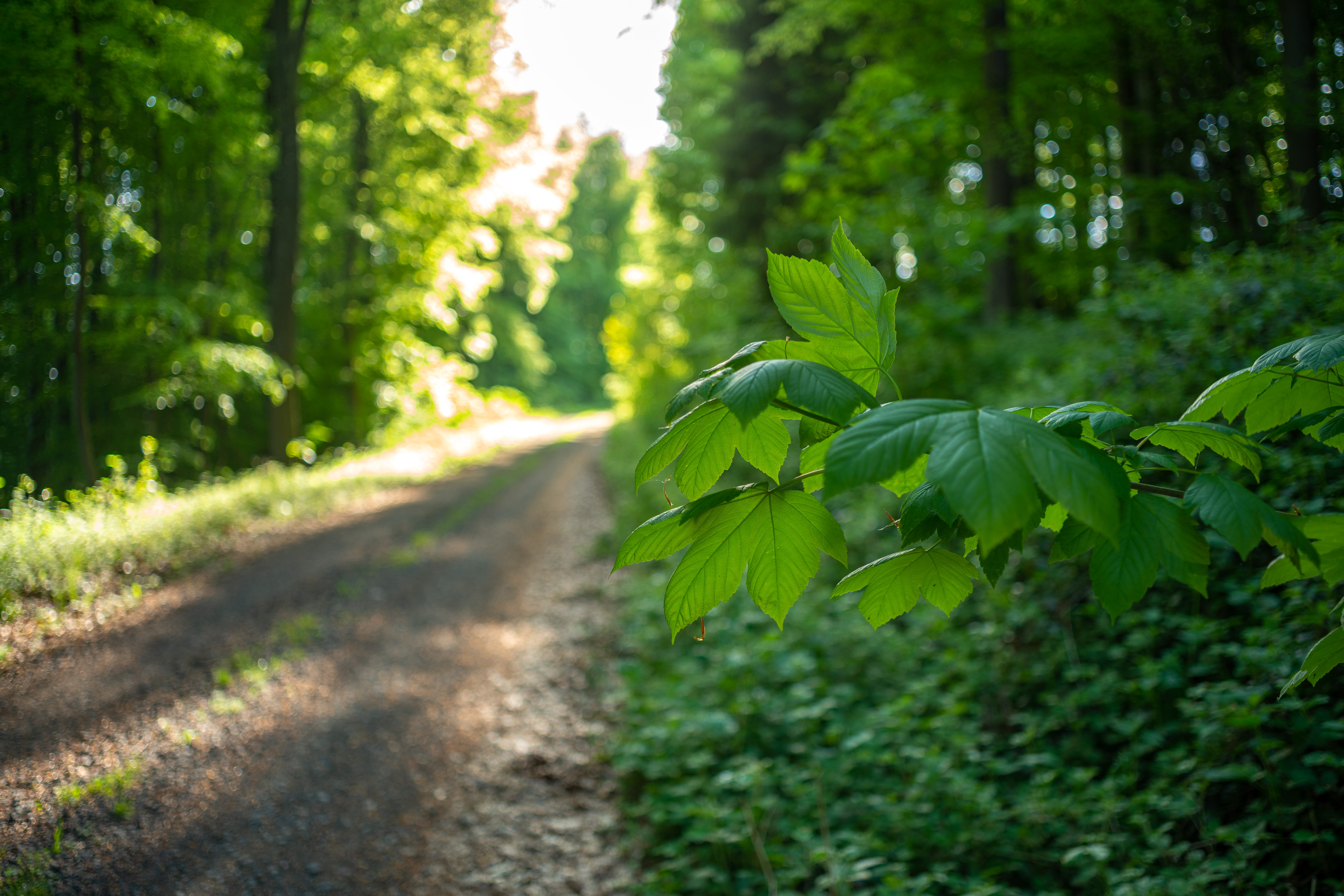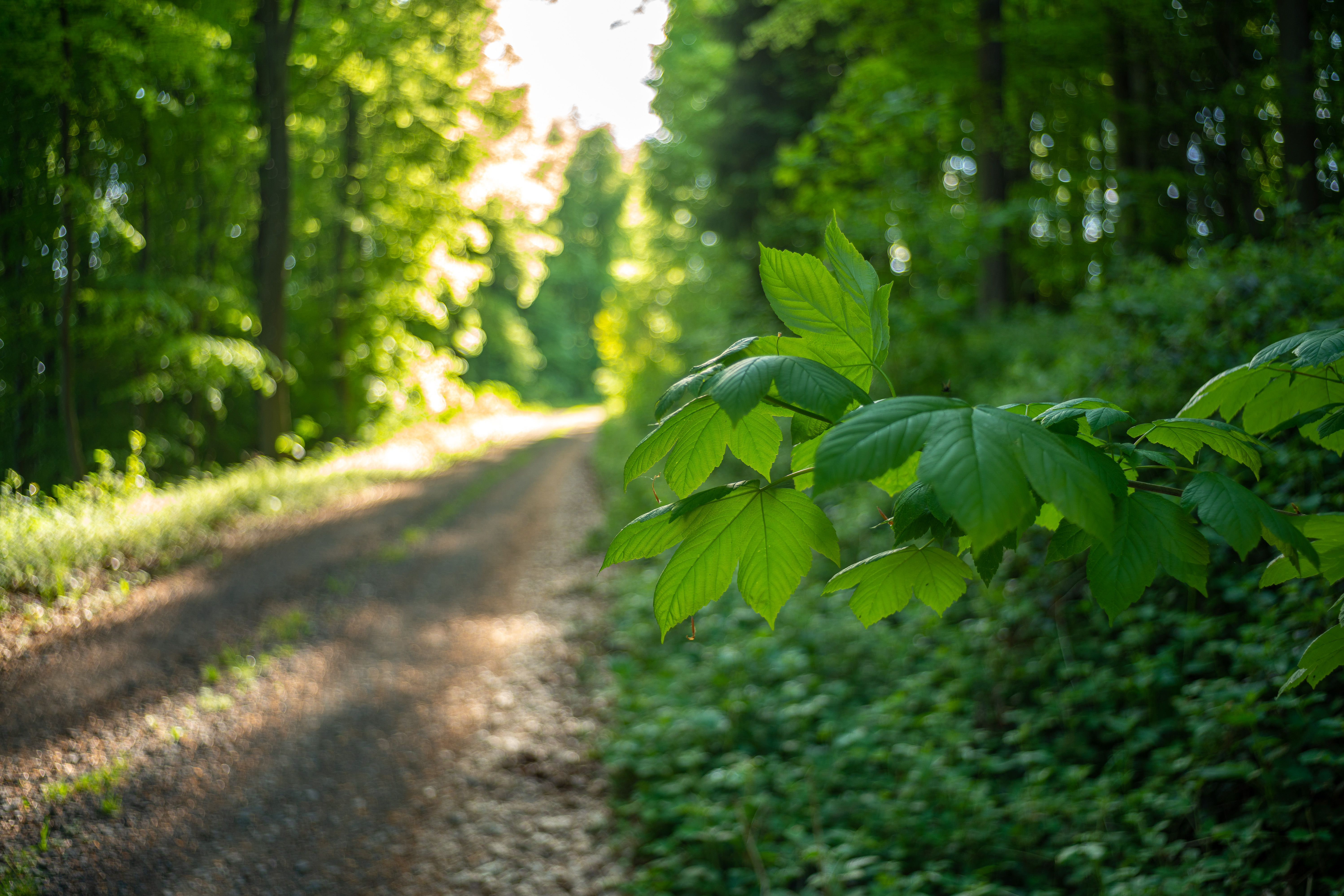 Kurze Distanz im Wald gegen Blätter mit durchscheinendem Licht bei f2.8: