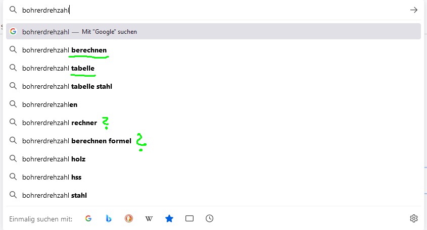 Aus Deinen Bohrerdurchmessern ergibt sich also der Drehzahlbereich, den Deine zukünftige Bohrmaschine können muß. Dazu dann noch "dreimal wahnsinnige" für Diamantfräser.