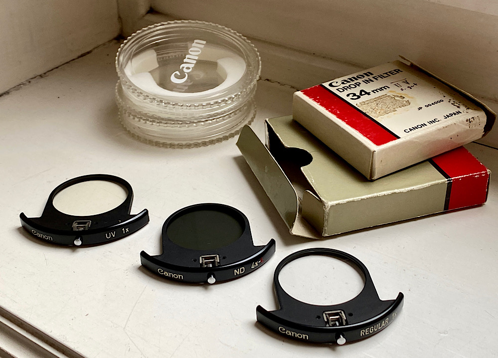There is a slot on the lens that accepts 34mm drop-in filters. I just have the 1x Regular filter that was supplied with new lenses.