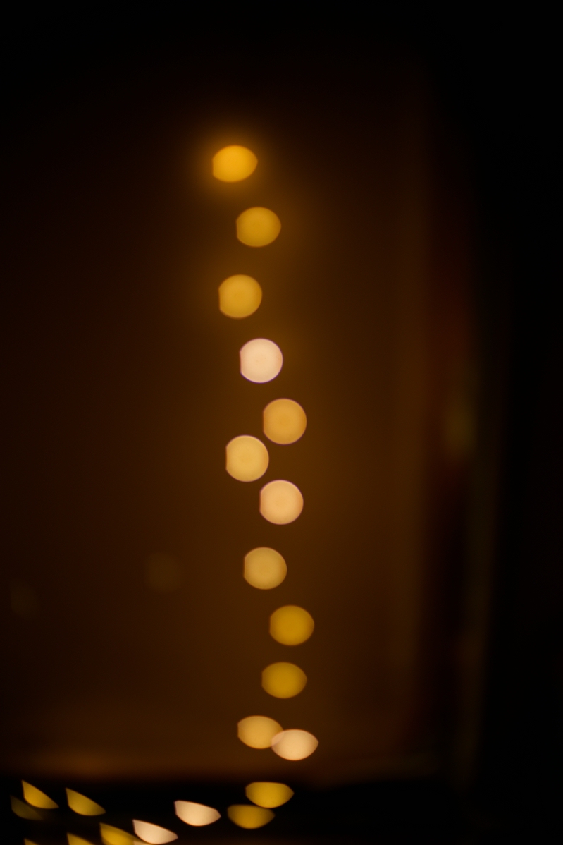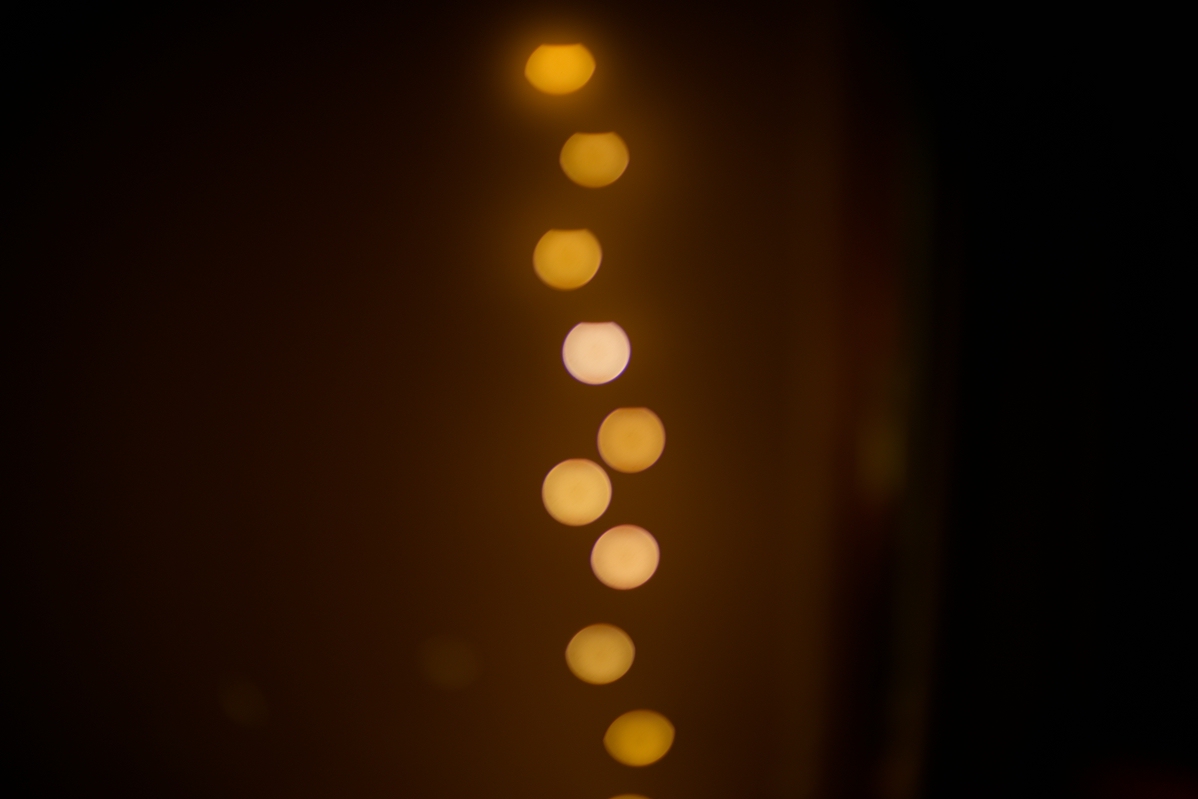 Ich hatte beim Testen nach Erhalt des Objektives unsere Esszimmer-Lampe genommen, das sind kleine Halogenbirnchen in Glaskolben, so ca. 10mm x 25mm in der Grösse und dann quer durchs Haus, was so 7-10m sein sollten. Ich meine, dass ich den Effekt nicht bekommen habe.