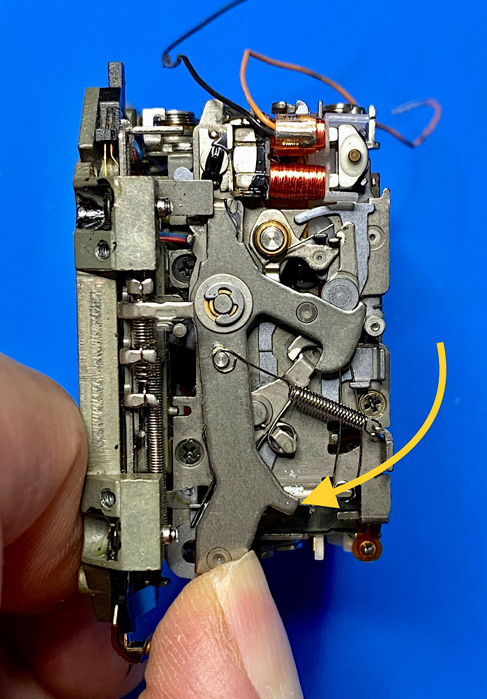 Dieses System ermöglichte aufgrund der geringeren Trägheit des neuen Systems erstmals die Verwendung der sehr schnellen Zeit von 1/4000 Zoll, setzte die Maschine jedoch dem Problem der permanenten Magnetisierung des Ankers aufgrund langer Inaktivität aus Folglich ist es dem Magneten nicht möglich, ihn freizugeben.