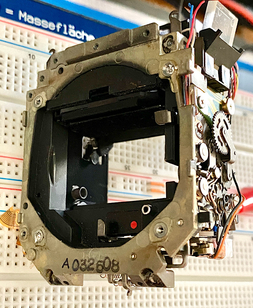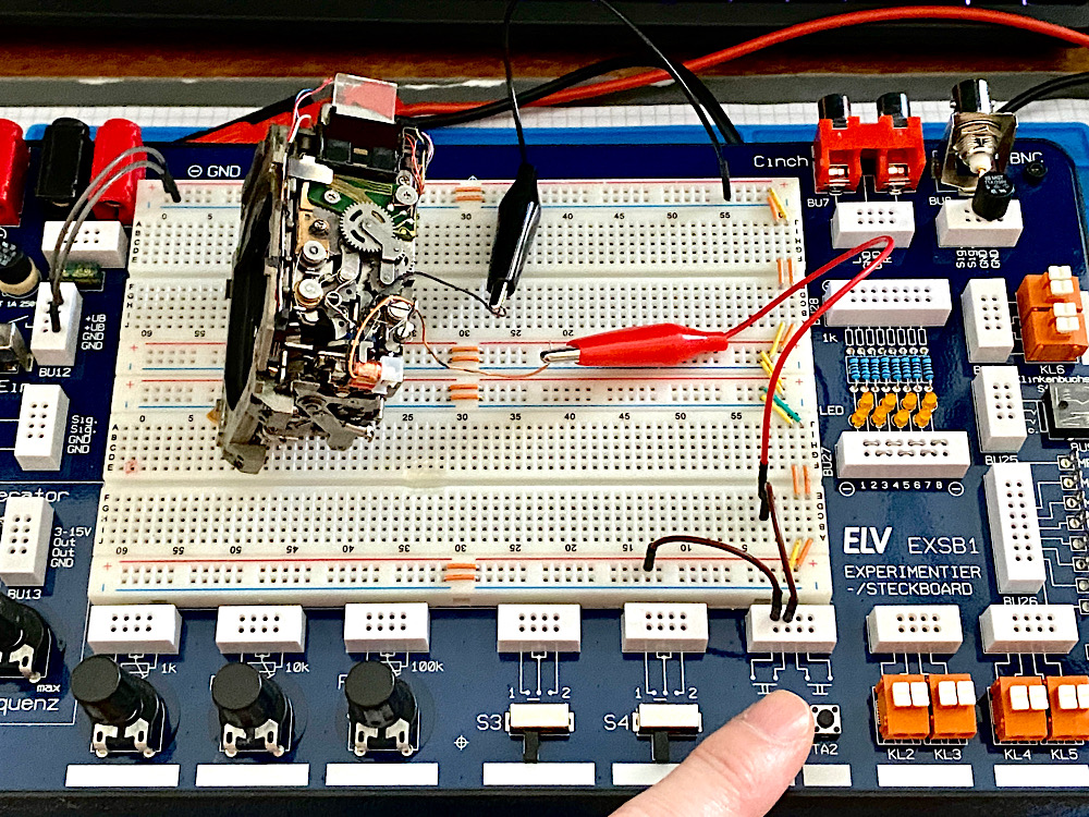 Der Spiegelauslösemagnet ist an mein Labornetzteil (Ausgangsspannung = 3 V DC) angeschlossen.