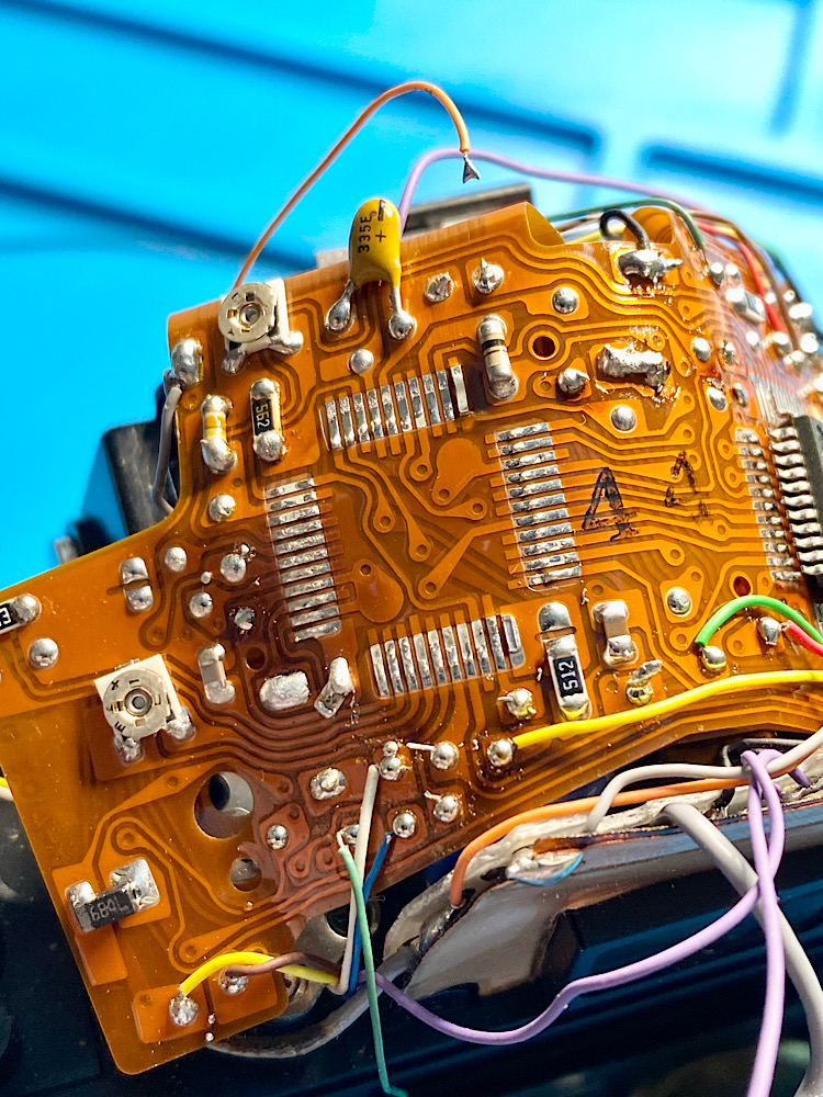 Auf der verbauten Platine ist es nochmals schwieriger mit dem (Ent)Löten, da die Platine nicht plan liegt und Kabel/andere Bauteile benachbart sind.