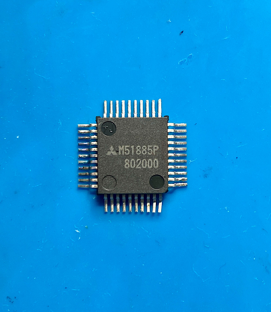 Oben der wieder eingelötete IC, unten im Werk aufgebracht.