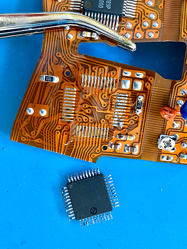 Das Arbeiten mit heißer Luft/Löten der ICs ist in der X-700 tricky: