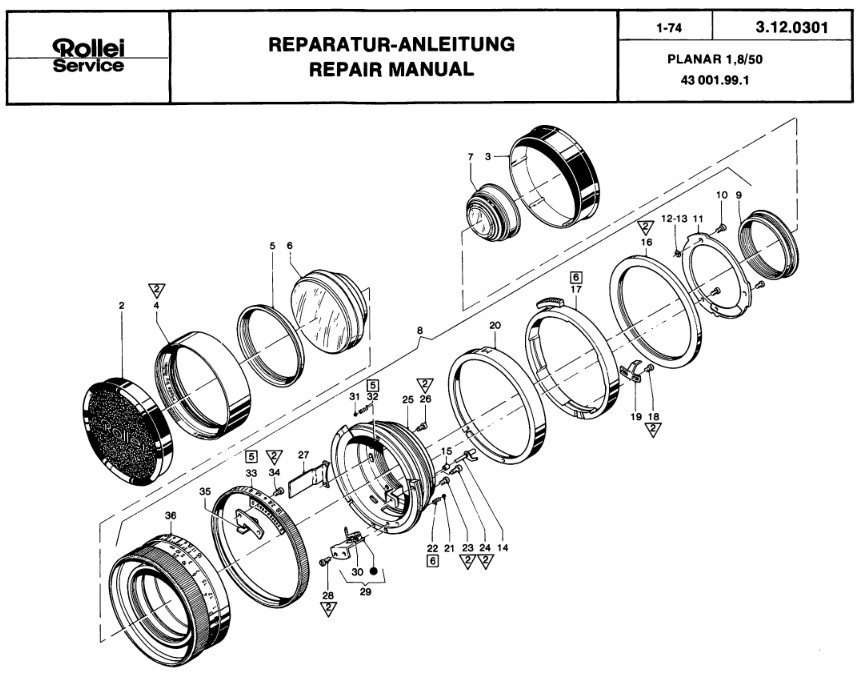 Ich habe gerade andere Sachen auf der To-Do-Liste als ein 1,4/50 zu zerlegen, aber vielleicht findet man ja mit etwas Zeit und Mühe in diesem Internetz von dem jetzt alle reden ein paar Fotos von zerlegten Zeiss/Rollei Objektiven als Referenz, oder gar ein Video.
