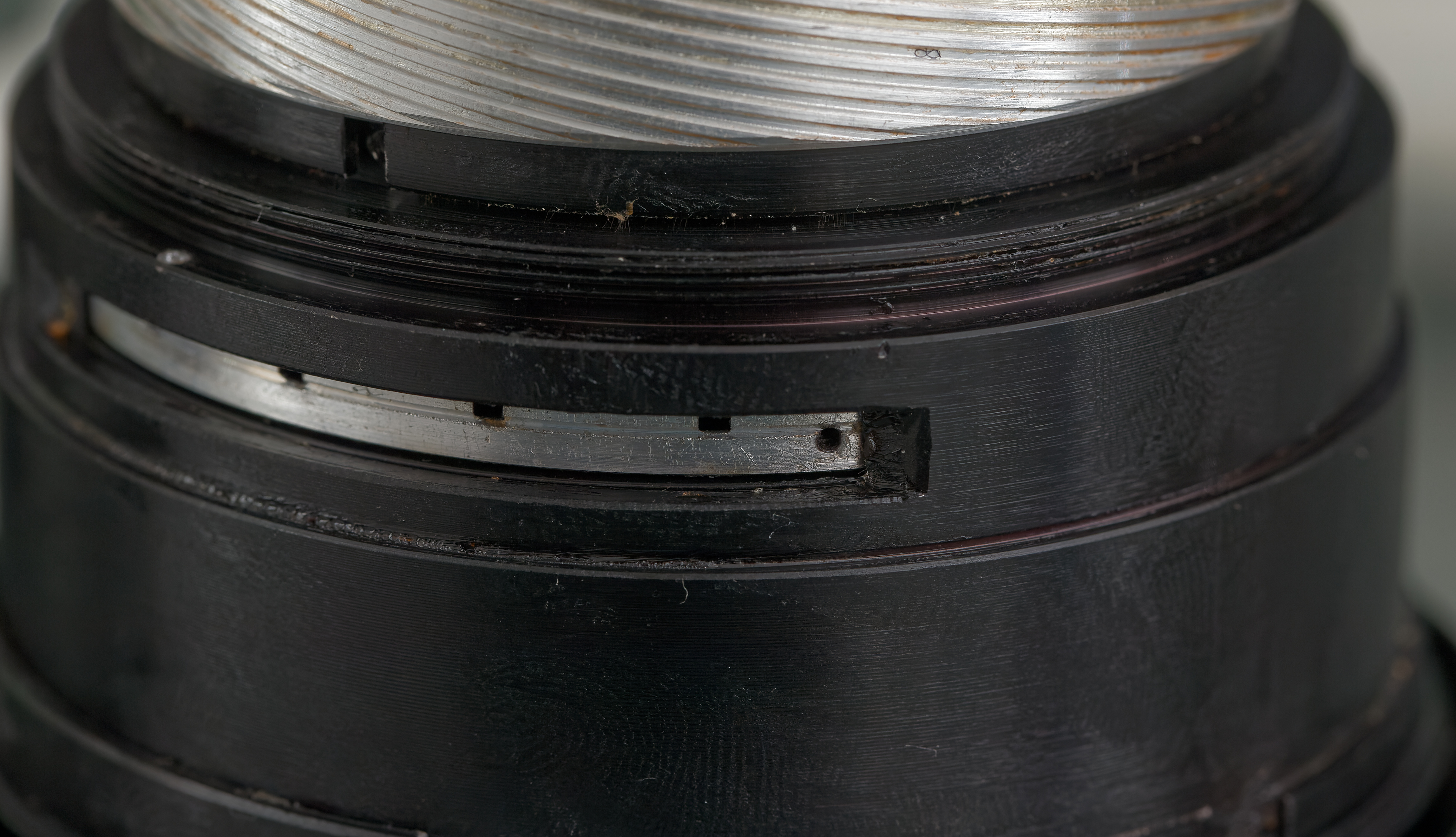 vollständig offen (f/4.5). Wenn der Bolzen entfernt ist, dann kann man den Aluring weiter nach rechts drehen und die