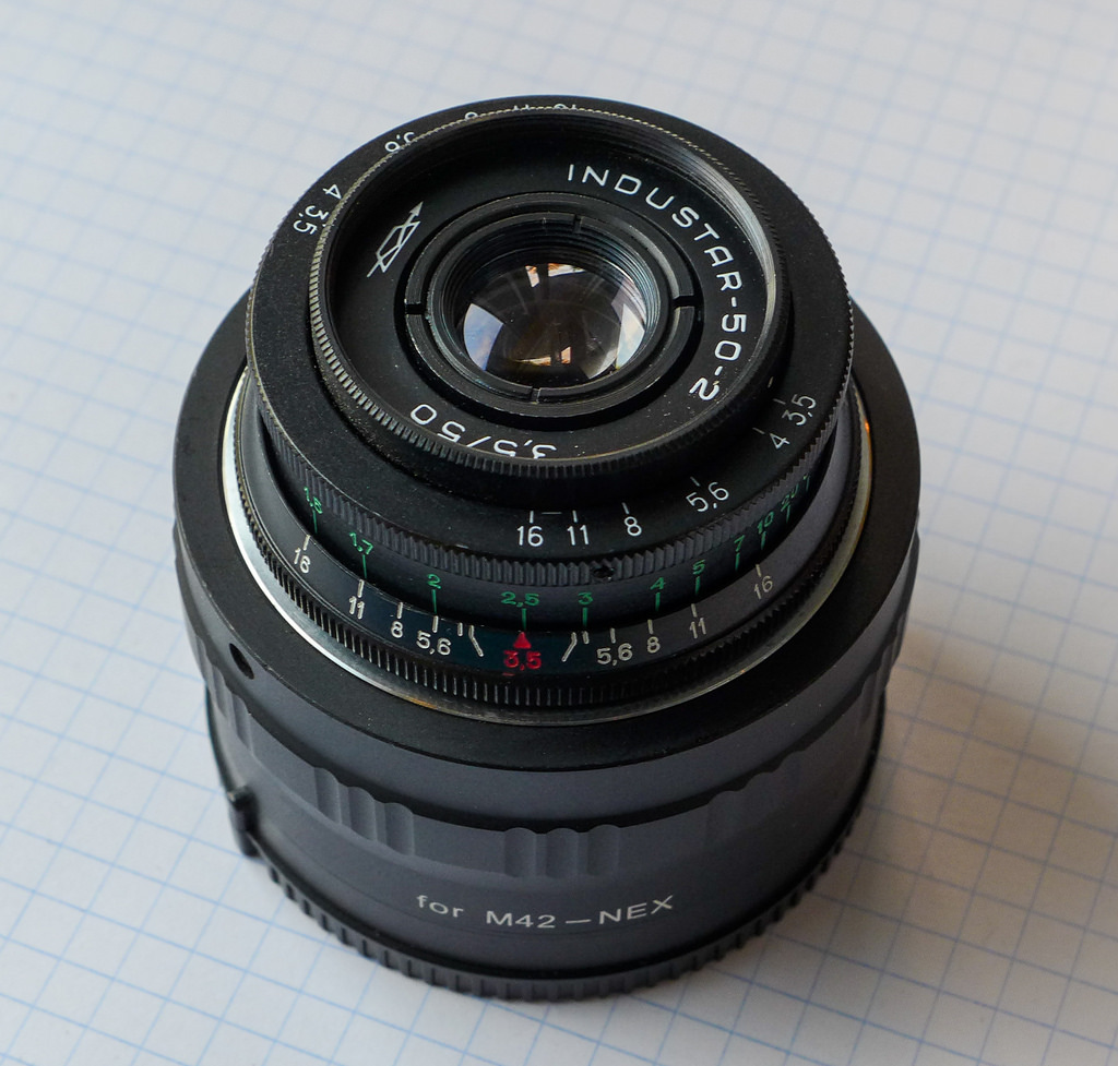 Ich habe mein Industar mal mittels eines Adapterrings M42 auf M39 an das VNEX und die Sony A7 gebracht, um die Naheinstellgrenze auf ein angenehmes Maß zu reduzieren.