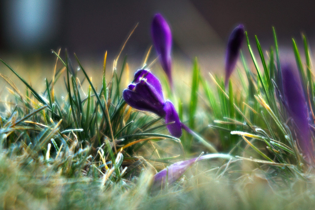 #1: Heute Morgen lag ein Hauch von Raureif auf den Krokusen. Ich hatte allerdings nur ganz wenig Zeit zum Fotografieren