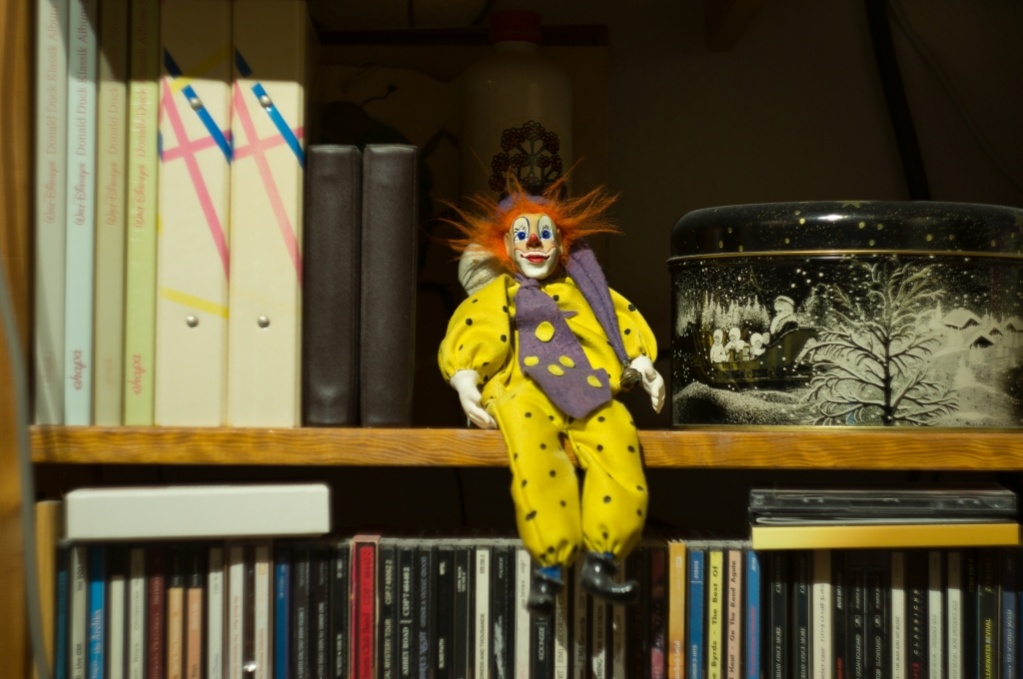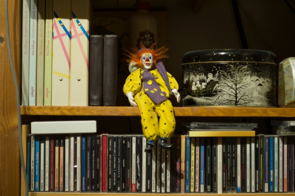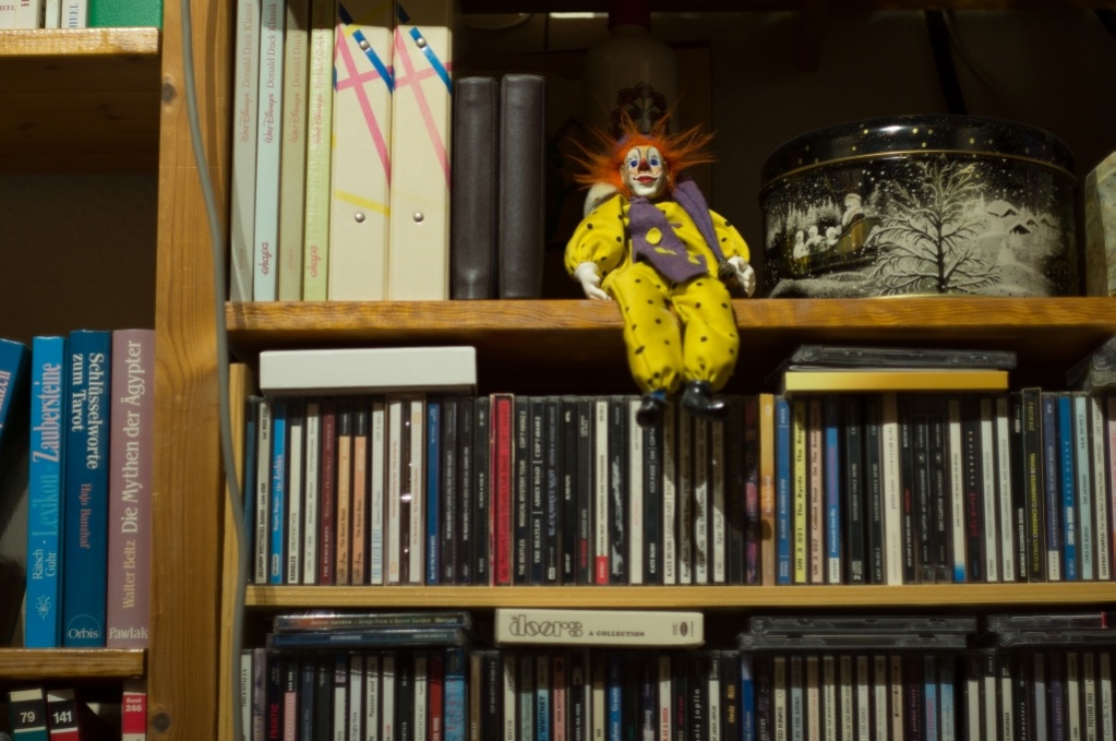 Die ersten zwei Bilder sind mit dem Color Ultron gemacht, die zweiten zwei mit dem Zeiss Ultron. Wenn man sich bei der Fernaufnahme die Tannenzapfen und bei der Nahaufnahme die CD-Titel anschaut merkt man den Unterschied. Ich finde das nicht normal, keins meiner anderen Objektive bildet so ab. Ich bin mir aber nicht sicher ob man das bei den verkleinerten Bildern sehen kann. Ach ja, es wurde jeweils auf die Augen des Clowns und auf den Dachgiebel des kleinen Hauses in der Mitte scharfgestellt, Farbtemperatur der Fernaufnahmen 5200 K, der Nahaufnahmen 3000 K. Alle Bilder wurden mit einer Sony Nex 5n gemacht.