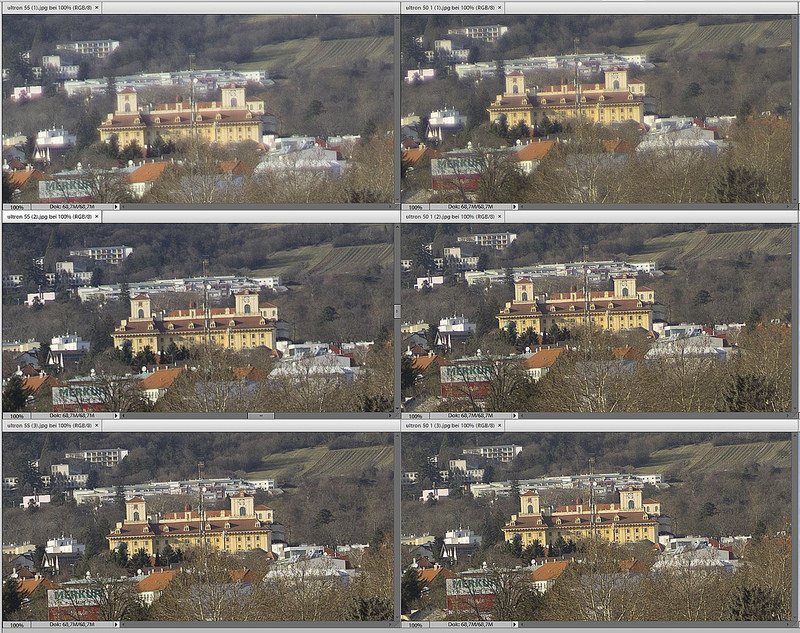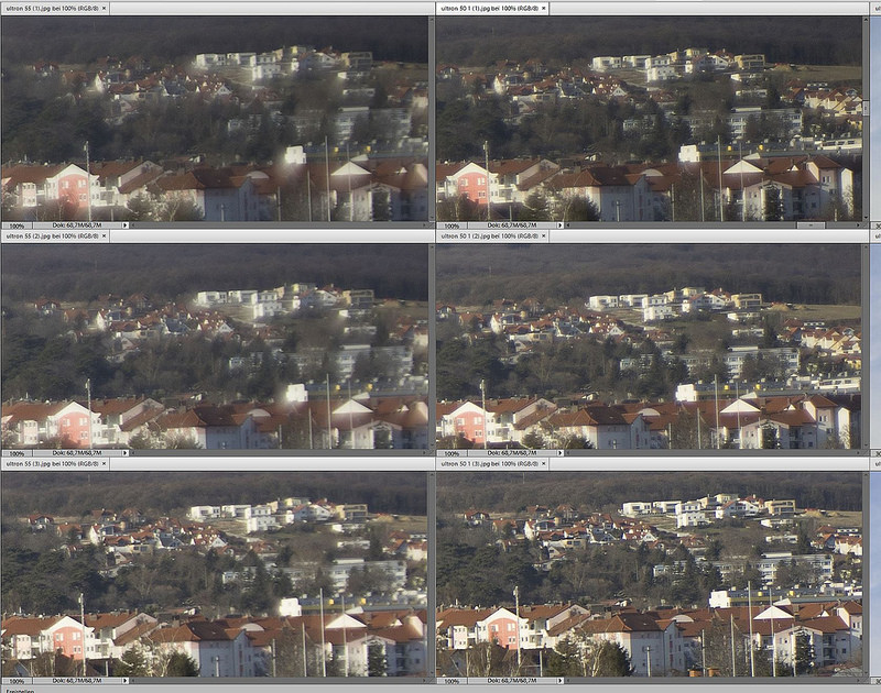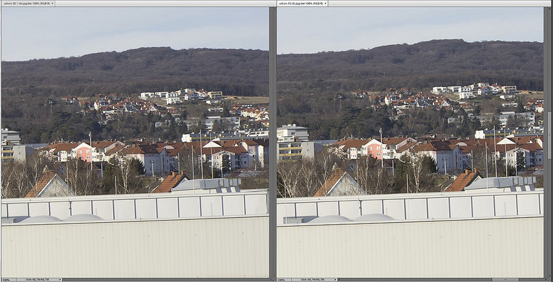 Die Aufnahmen entstanden an völlig unterschiedlichen Tagen... was man in der Fernaufnahme schon am Zustand der Bäume in der Bildmitte (verwelkende Blätter in der C.Ultron Aufnahme) erkennen kann.
