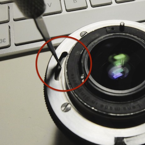 ein kleiner Tipp: ich bohre immer einen kleines Loch in den QBM Bajonette Adapter wo ich eine M0,5-M1 Maschienenschraube einsetze die das Objektiv fixiert. Danach hält alles bombenfest und das Objektiv rutscht nicht mehr raus beim focusieren. Gleichtes geht auch bei Praktica PB Bajonette Adaptern. (an der orange umkreisten Stelle)
