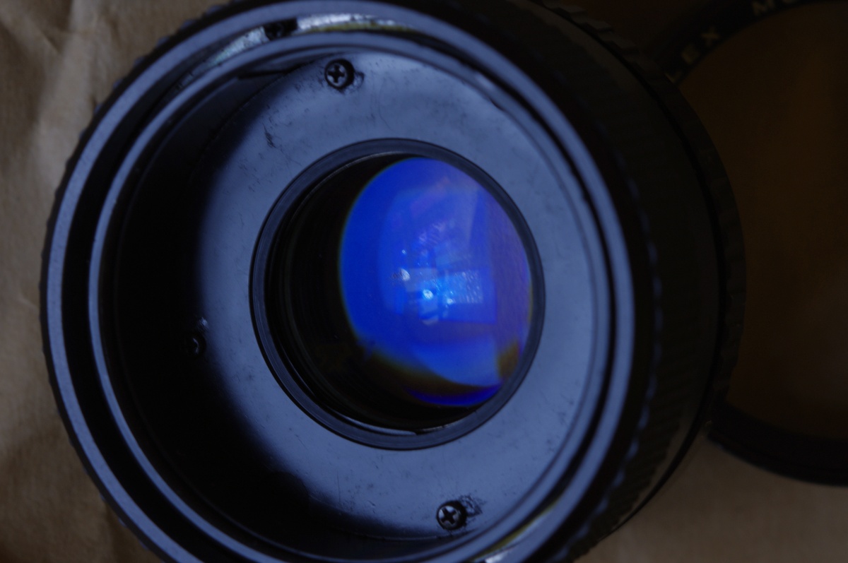Ich habe jetzt die verklebten Lamellen gelöst. Das Blendenpaket hat am Rand zwei halbrunde Aussparungen, (ich hab mal zwei schnelle Fotos gemacht - freihand und mit seitlich einfallendem Tageslicht) durch die ich zuerst einen Tropfen WD 40 und dann etwas Isopropylalkohol hineingetröpfelt - und dann gewartet habe. Da waren sie! Anhang 27374 Der vorgefundene Zustand