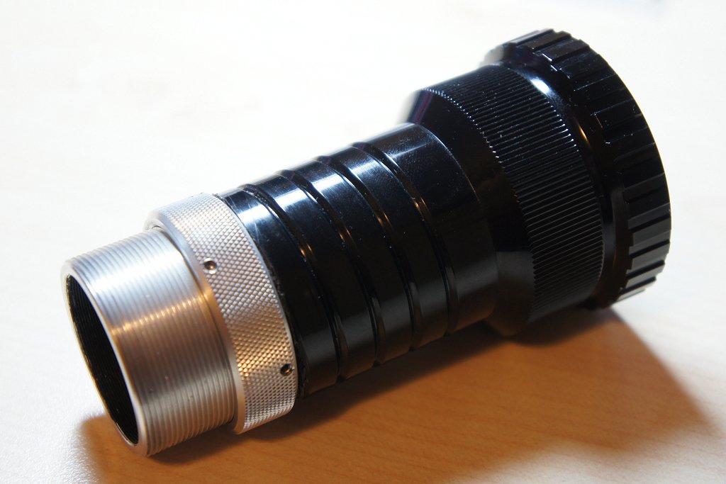Es läßt sich relativ leicht am VNEX adaptieren, indem man den überstehenden Plastik-Tubus plus ein paar zusätzliche Millimeter entfernt (geht bei diesem Material ganz einfach mit einem Teppichmesser). Dann läßt es sich an der teilweise freigelegten Rücklinsen-Halterung am VNEX befestigen. Es erreicht nicht ganz unendlich, wobei das ganze aber brennweitenabhängig ist. Am weitesten Richtung Unendlich kommt man bei mittlerer Brennweiteneinstellung.
