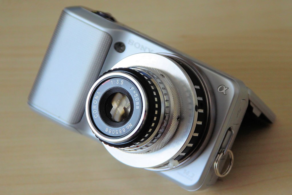 Mit dabei waren die NEX, das VNEX und ein Corona 3,5/50mm: