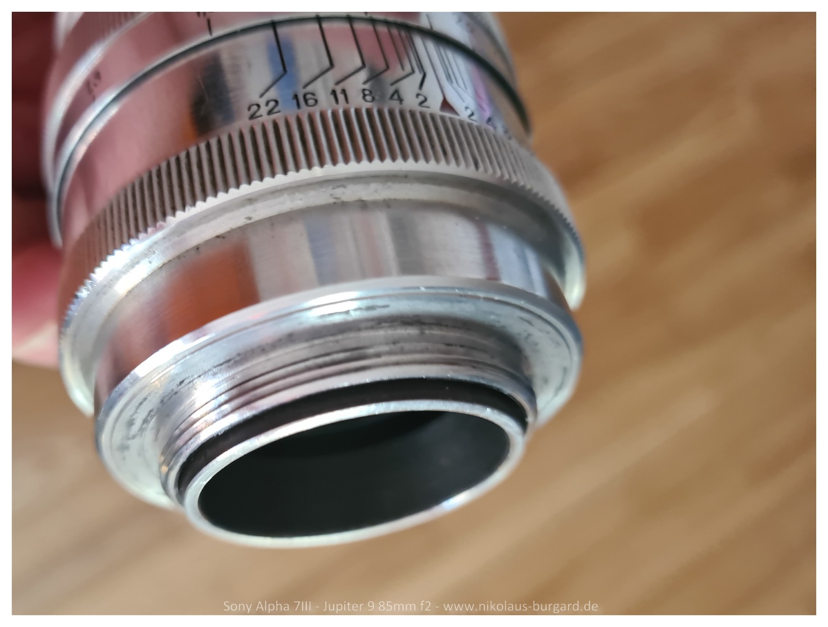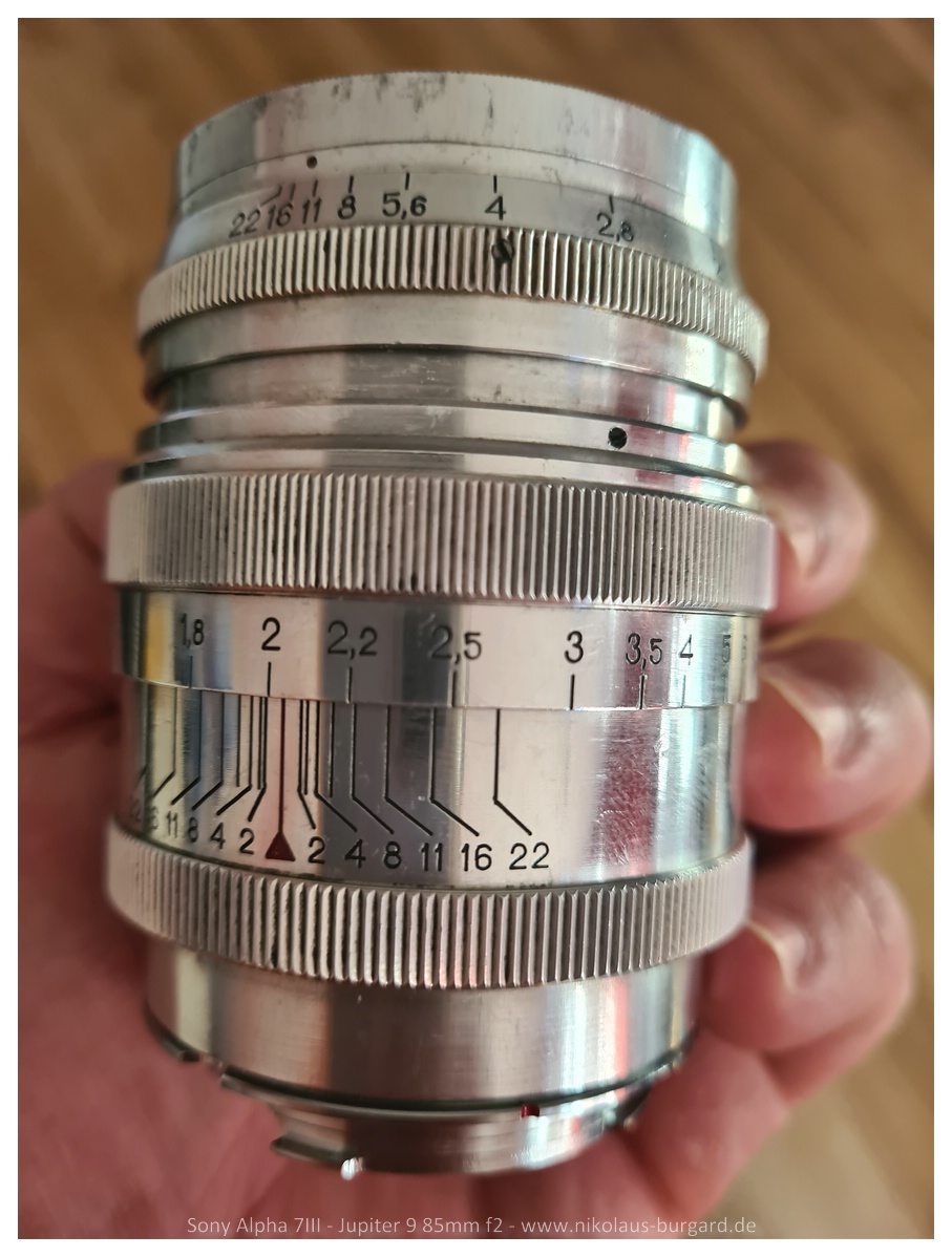 mein Jupiter 9 ist ein frühes Alu-Modell mit Leica LTM (M39) aus dem Jahr 1955 und den vielen Blendenlamellen,