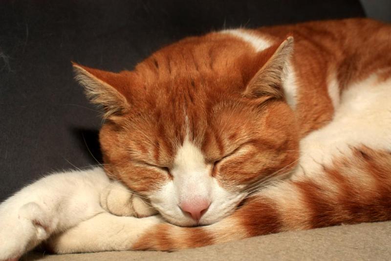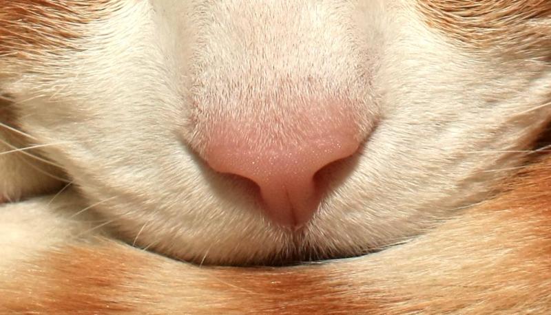 hier ein Bild von unserem (kleinsten) Stubentiger - Nahgrenze, Blitz gegen die Decke, Blende 8: