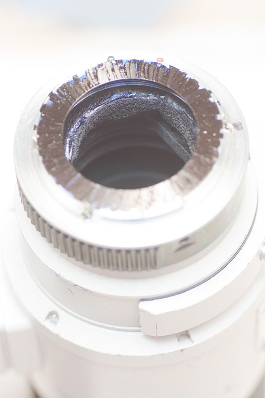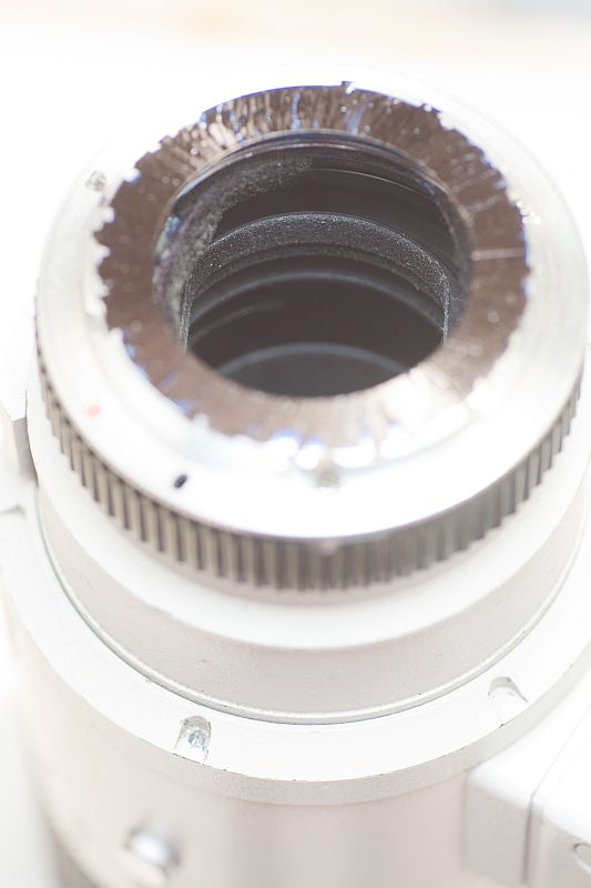 Da ich den Verdacht hatte, das der Blendenkörper, der ja ehemals mittels der 4 Schrauben (die, welche letztlich durch die geöffnete Blende abgeschraubt werden) am FD Mount "hing", nun nicht mehr ideal berechnet im Strahlengang hängt, dass dies für die sonderbaren Effekte mitverantwortlich sein könnte.
