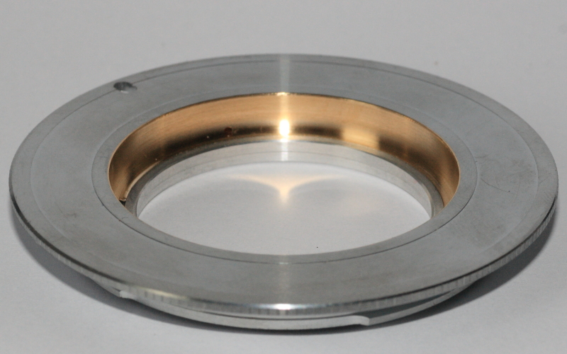 Diese höhenverstellbare Rücklinsefassung sitzt in einem "präparierten" M39 Adapter, dessen innere Weite aufgebohrt wurde.. auf 41mm und eine Tiefe von 5mm