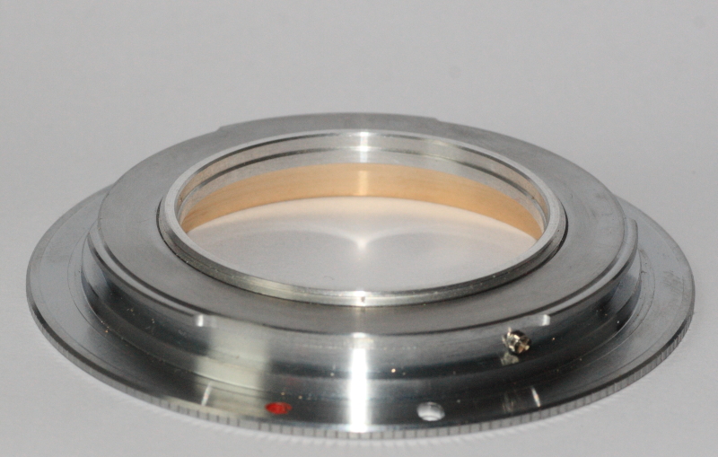 Diese Rücklinsenfassung ermöglicht in dem präparierten Adapter eine Höhenjustage des Abstand Rücklinse zu beweglicher Gruppe. In Verbindung mit dem Anpassen des Unendlichkeitsanschlag kann ich also die Rücklinse soweit in den Spiegelkasten schieben (ohne das sie aufliegen würde) und die bewegliche Gruppe nachlaufen lassen, sie an die Rücklinse heranbringen