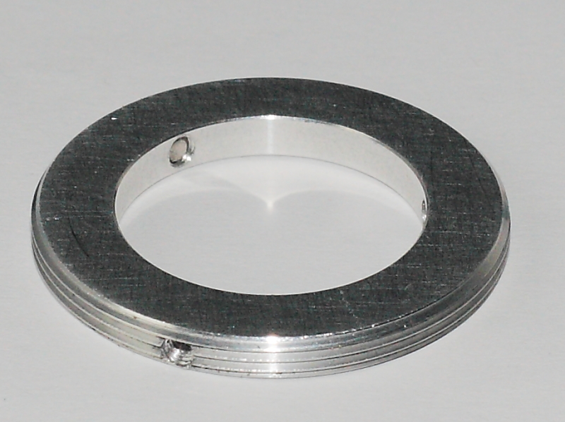 Die Wandlerplatten gibt es in 4 verschiednen Lochdurchmessern und sie sind jeweils mit 3 im 120° Winkel angeordneten Madenschrauben (genau wie die Muttern) zum Festsetzen der Optiken ausgestattet. Hierbei spielt es dann keine Rolle mehr, ob ein zu testendes Objektiv nun ein eigenes Schraubgewinde hat oder eben nicht.. es wird einfach in dem Ring "festgeklemmt".. und ist so bereit für die Aufnahme an der Mutter des VNEX..