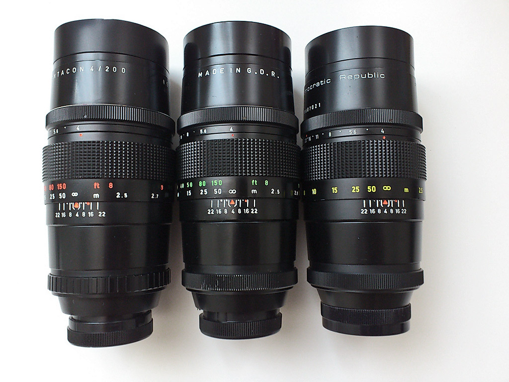 Farbvarianten der ft/m Beschriftung Pentacon 4/200 15L