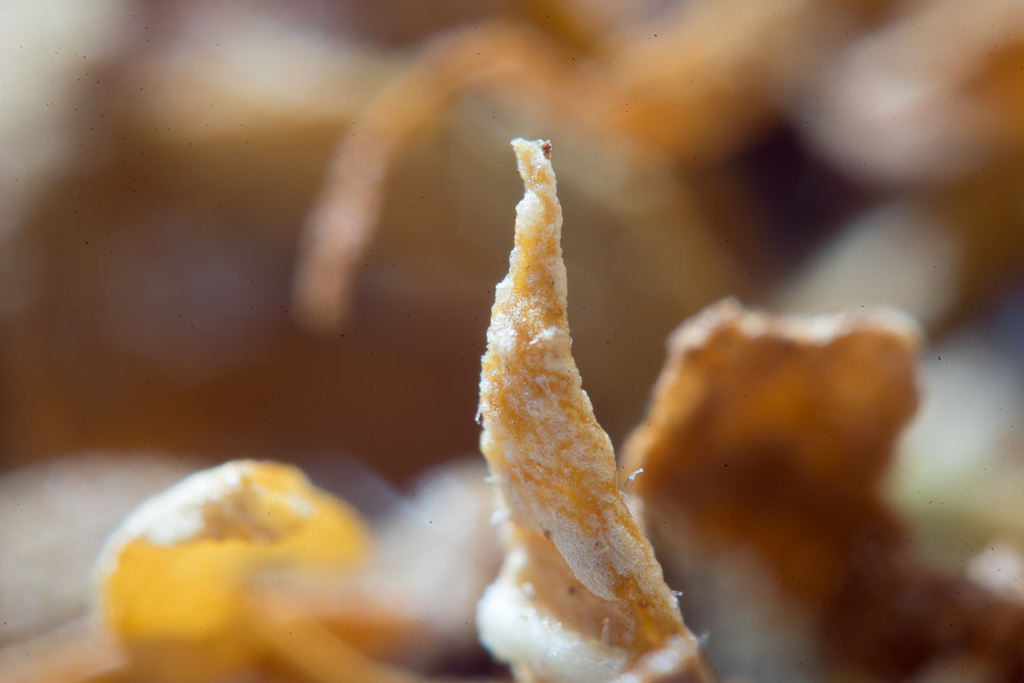 Ja, ich hatte mich auf Grund der vergessenen Lesebrille verlesen, der lange Tubus sah einfach nach 80mm aus. Ernüchternd war das Ergebnis am Vollformat: 80% schwarz, in der Mitte ein winzig kleines, rundes Fisheye-Bildchen. Dank des Filtergewindes von 40,5mm habe ich dann den Retrotubus aufgeschraubt und das Ganze dann ans VNEX short gebracht. Ich habe garnicht erst die Schnecke rausgedreht, das Fokussieren war schon so ein Abenteuer. Wir reden bei den Bildern (Blende 8) über eine Motivgröße von 4,5mm in der, äh… Breite.