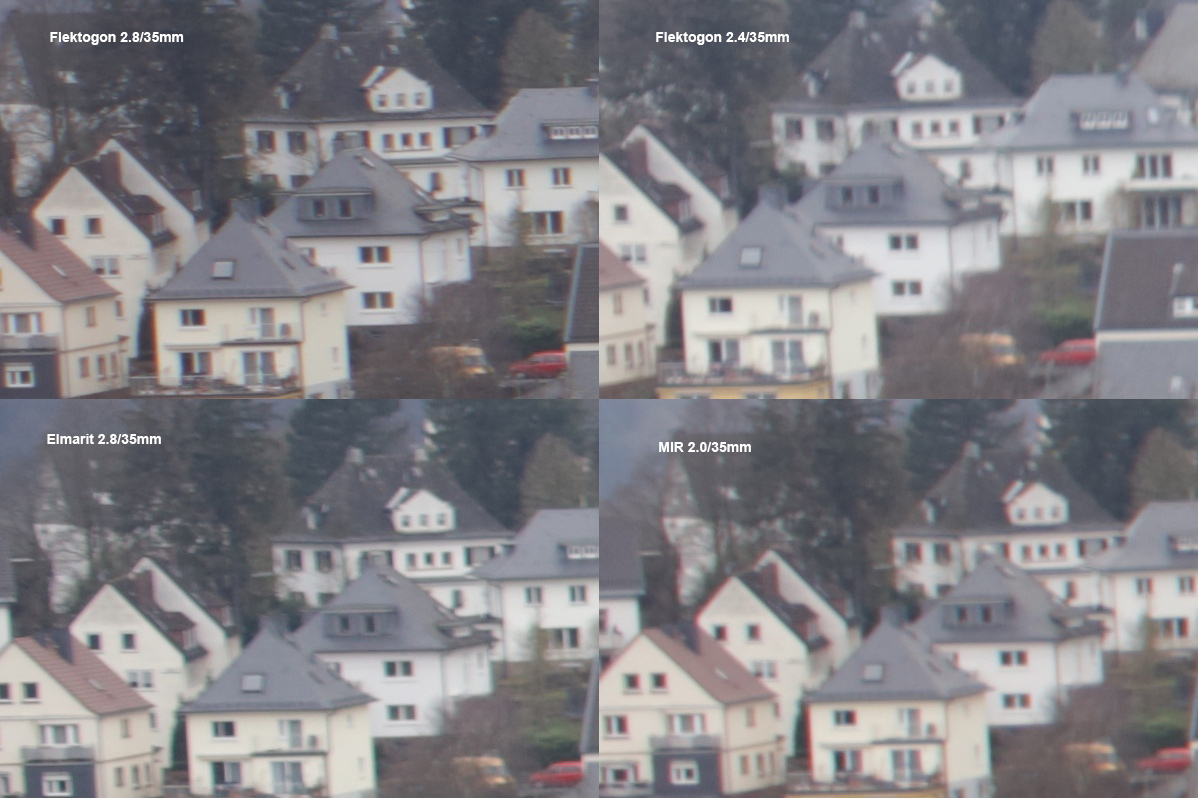 Diesmal mussten die Objektive auch gegen unendlich zeigen, was sie können. Fotografiert wurde vom Stativ, mit Spiegelvorauslösung, bei relativer Windstille. Die Einstellungen waren für alle Teilnehmer gleich: F/5.6, 1/40s, ISO 200. Die Bilder sind direkte jpgs aus der Canon EOS 5Dsr (Kleinbild-Sensor), bei voller Kameraauflösung (50MP), Bildstil neutral (also ohne kamerainterne Schärfung), lediglich verkleinert mit IrfanView (Lanczos3). Die Crops sind 100%, wie immer.