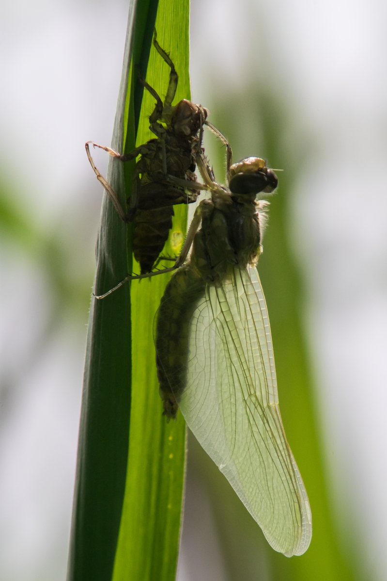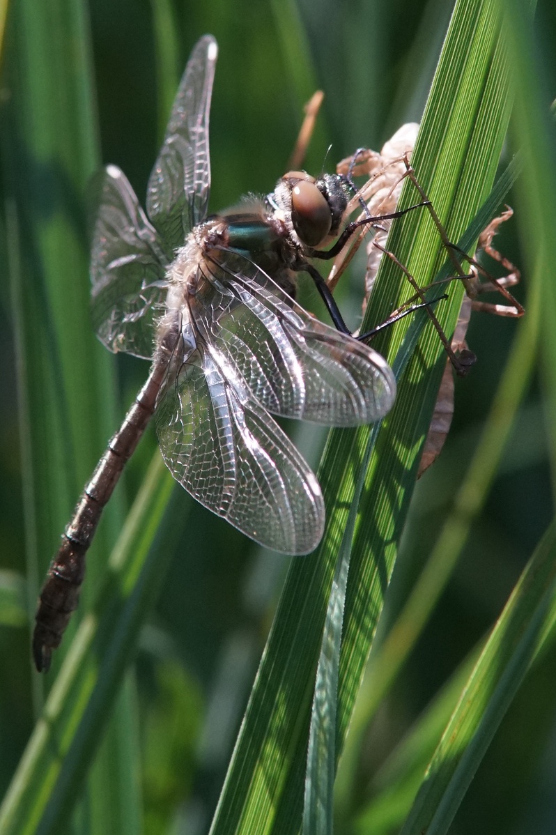Hier eine Libelle, die gerade aus der Larve geschlüpft ist ...