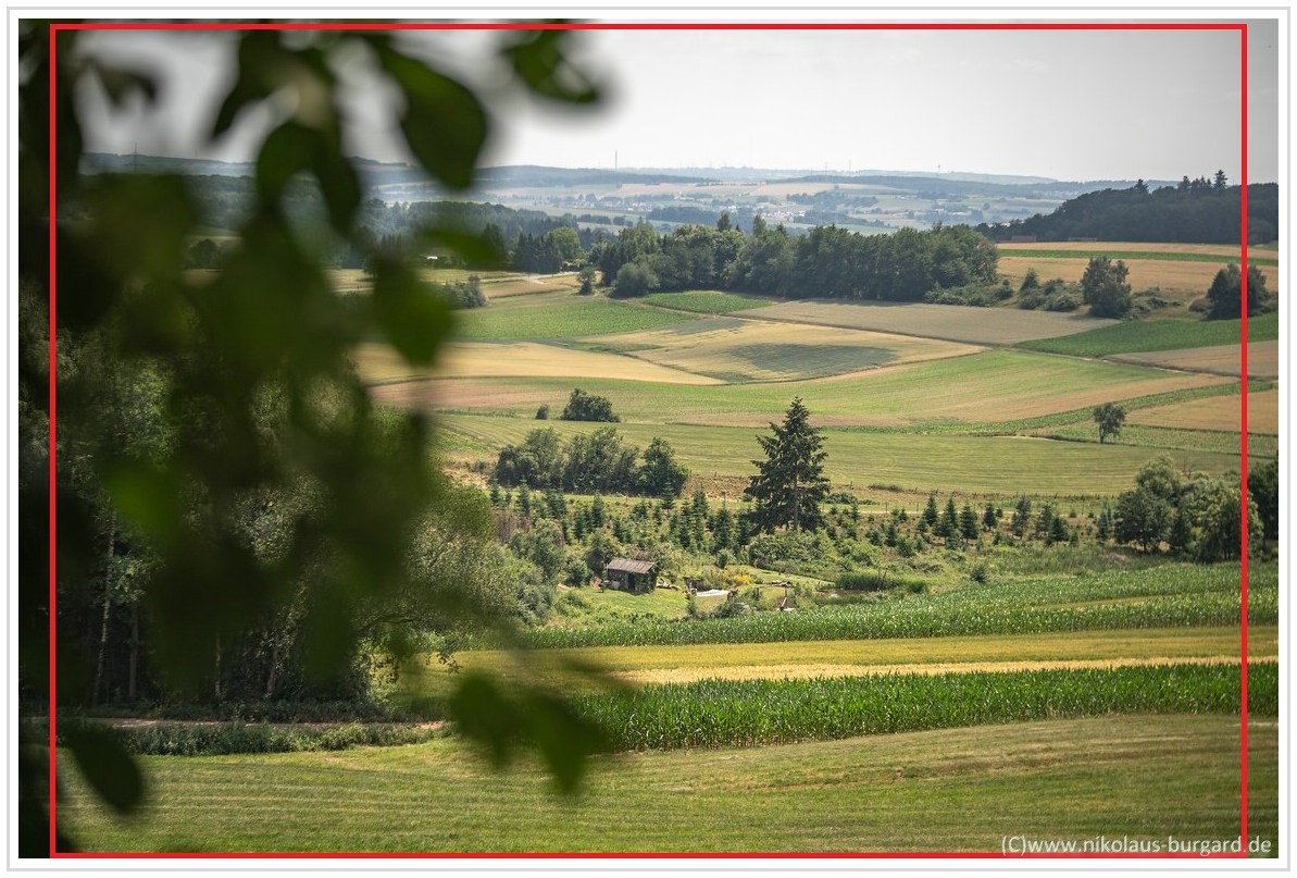 Wenn ihr euch jetzt fragt, warum nicht die Crops vom Rand? Ich habe im nächsten Bild mal markiert, in welchem Bereich sich schärfemäßig "was tut". Außerhalb der Roten Linien wird es einfach nicht schärfer.