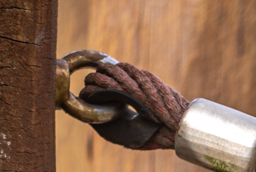 - man sieht hier mehr von den Holzstrukturen am Pfosten.