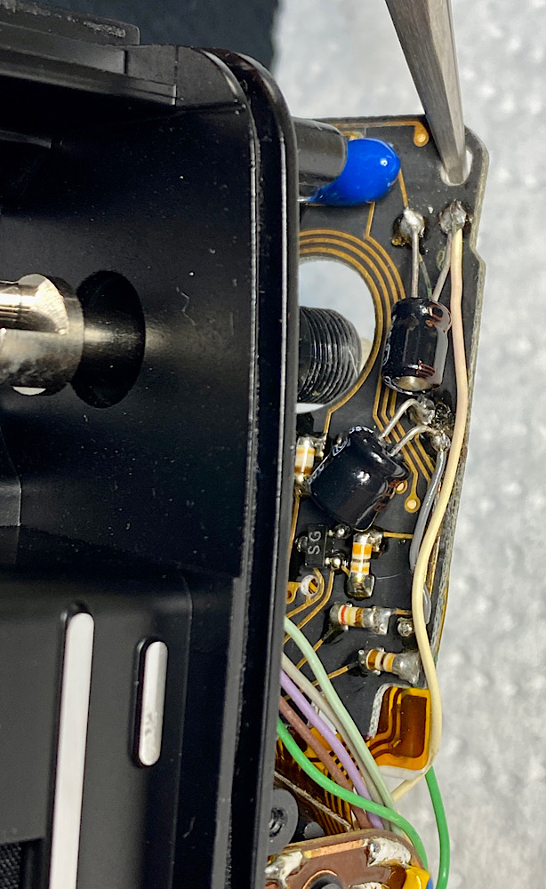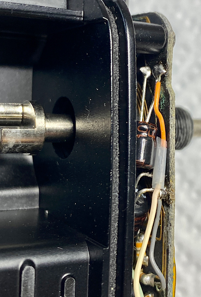 Das weiße Kabel rechts entkommt seiner Lötstelle.