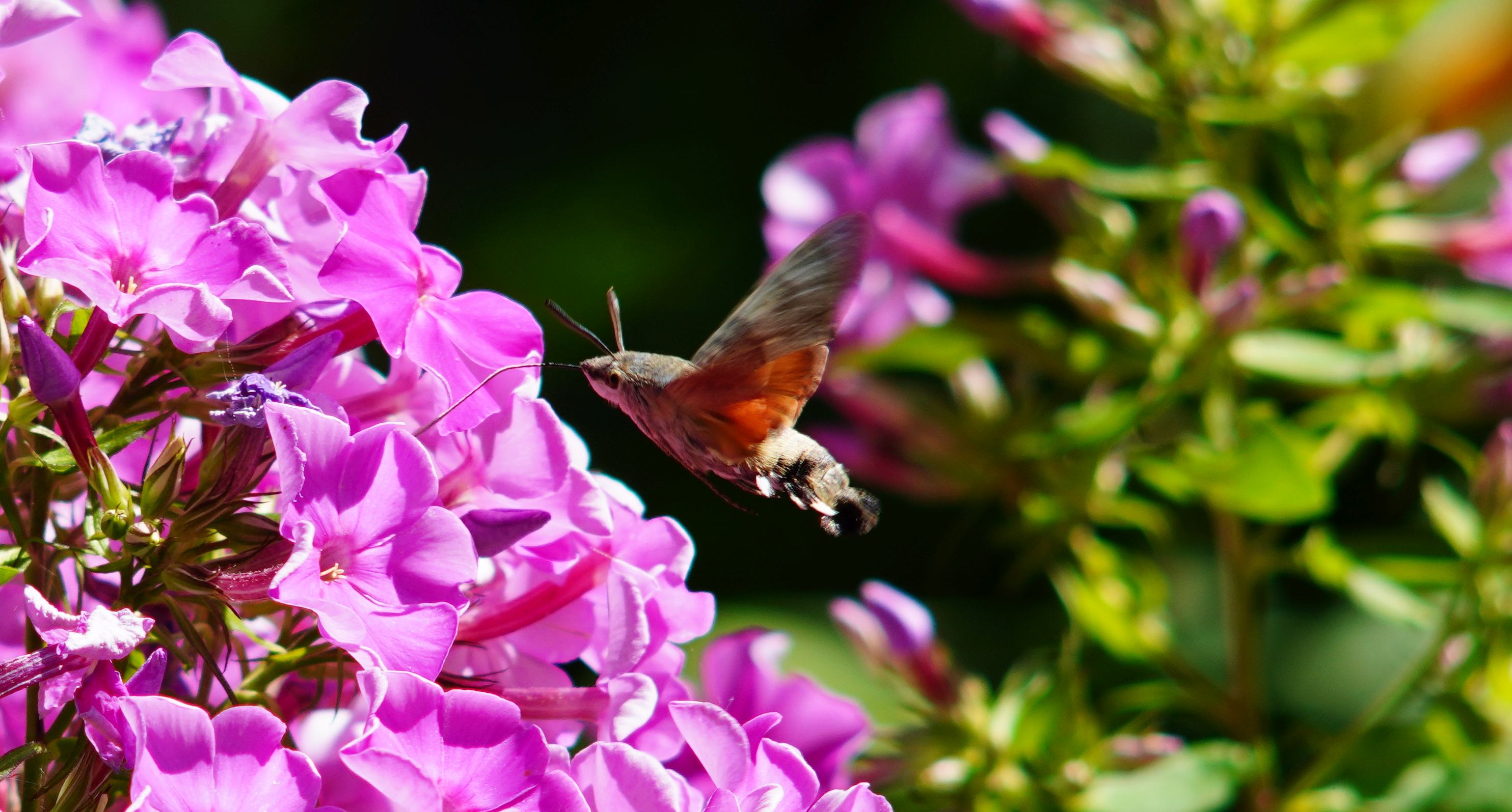 Taubenschwänzchen am Phlox, jeweils ca. 75% crop