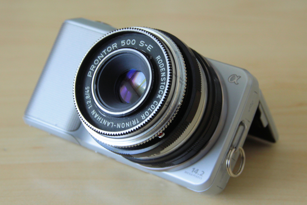 Endlich mal ein "richtiges" Pancake an der NEX! Objektiv und Adapter sind nur rund 18mm "dick".
