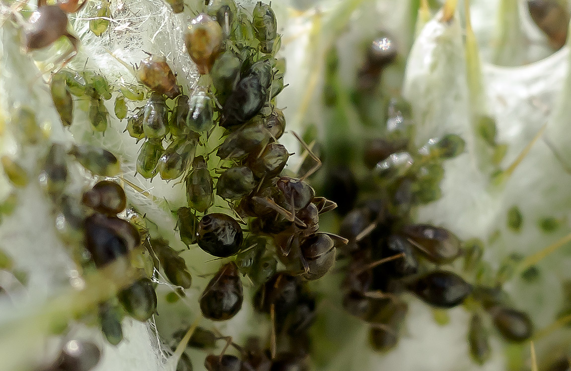 Da Pendelbewegungen des Körpers und die Bewegungsgeschwindigkeit des Blattes an dem die Läusefarm im Wind pendelte aneinander angeglichen werden müssen, ist dies mit dem elektronischen Sucher kaum zu machen, weil die Lupe zur Kontrolle immer wieder mal zugeschaltet werden muss, aber nicht reaktionsschnell wieder verschwindet.